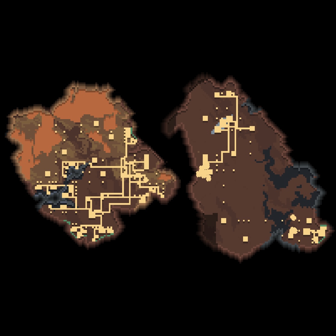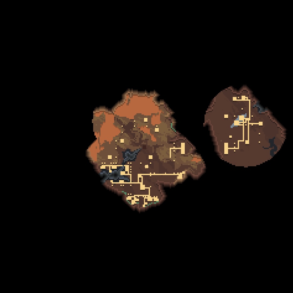 에르키아 분열의 미니맵. 크기가 상당히 작은 지역입니다. 마치 화물 매스 드라이버의 사용법을 익히기 위해 만들어진 튜토리얼 지역 같네요.