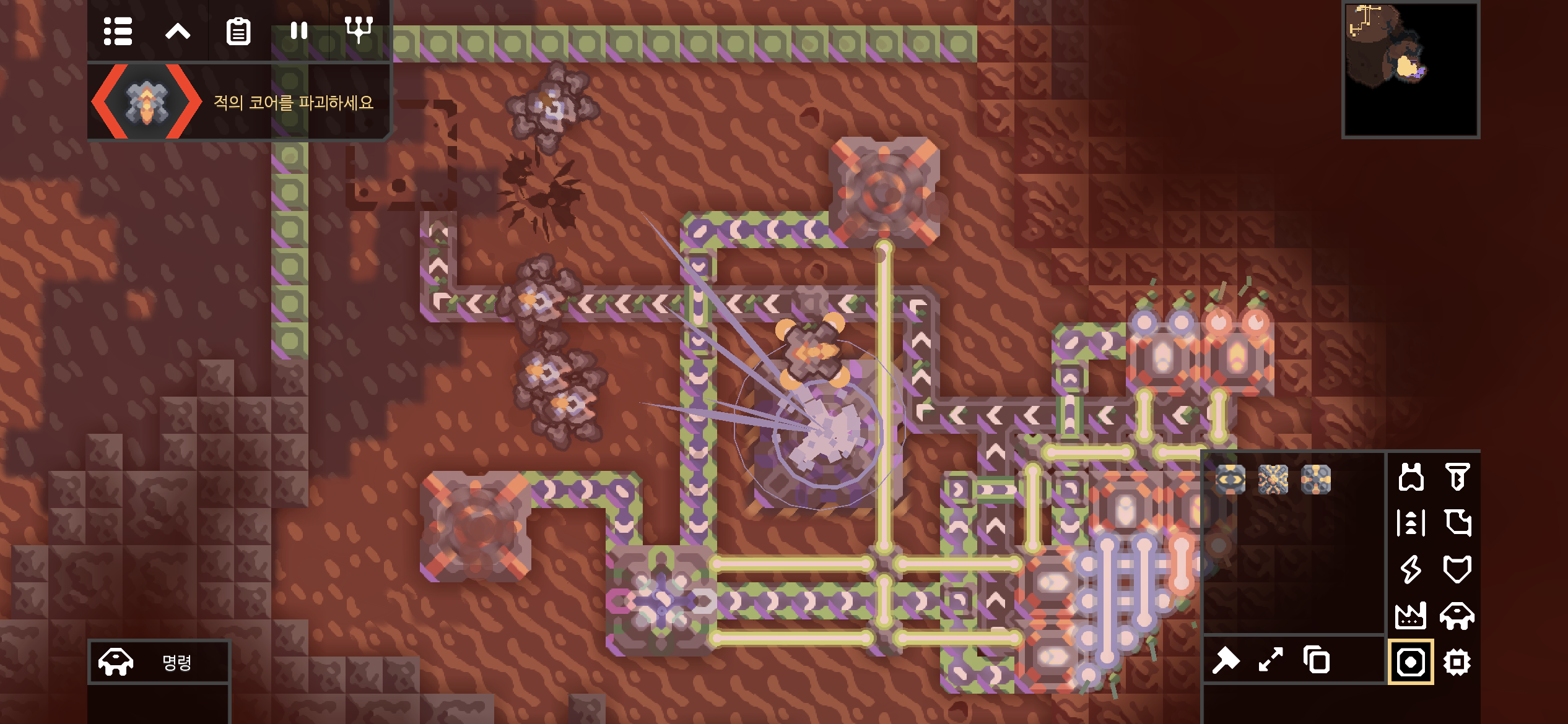 적 코어가 파괴된 빈자리에 아군의 추가 코어를 건설하고, 약간의 생산 시설을 건설합니다.