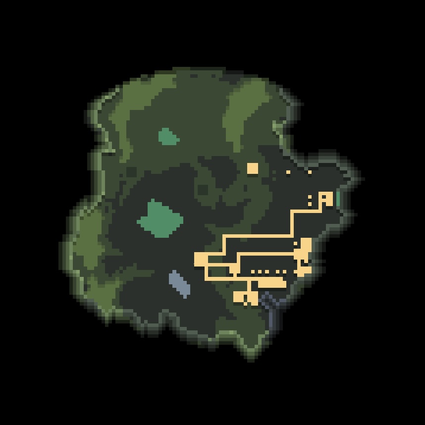 습지의 시작 미니맵. 지역 테두리 주변이 습지라는 이름에 어울리게 녹색 웅덩이(아르키사이트)들이 많이 있습니다.