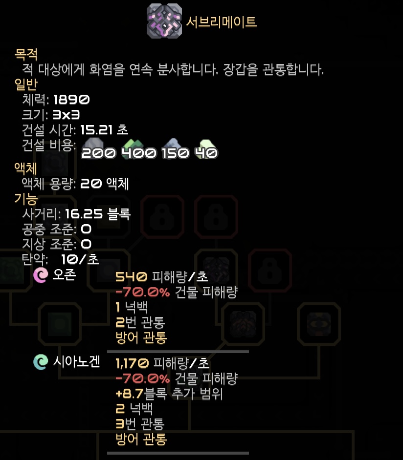 오존 또는 처음 보는 자원인 시아노겐을 탄약으로 사용할 수 있다고 합니다. 터렛 가동에 전력이 필요하지 않습니다.
