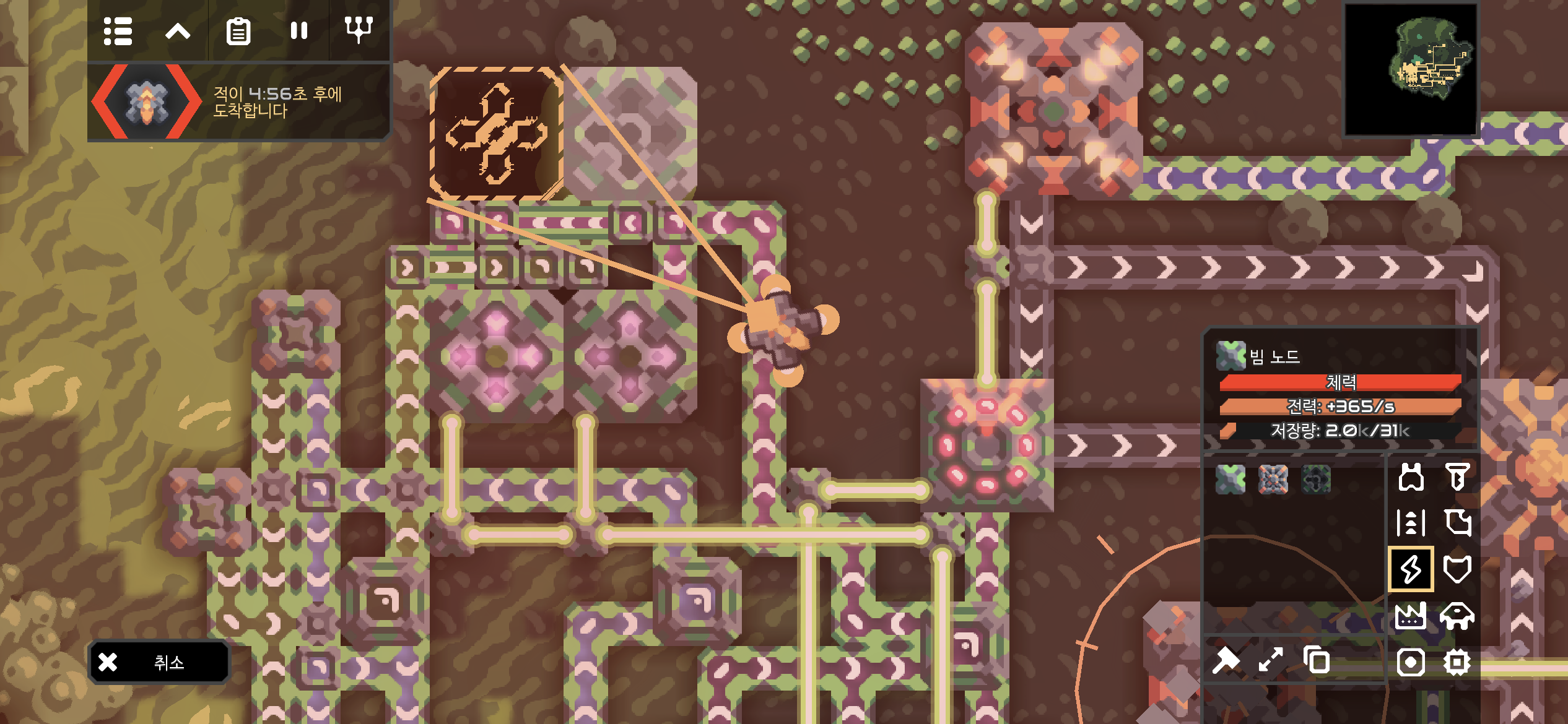 화학적 연소실이 건설되자 적의 도착이 카운트 다운으로 나타나고, 전력은 +로 전환되었습니다!