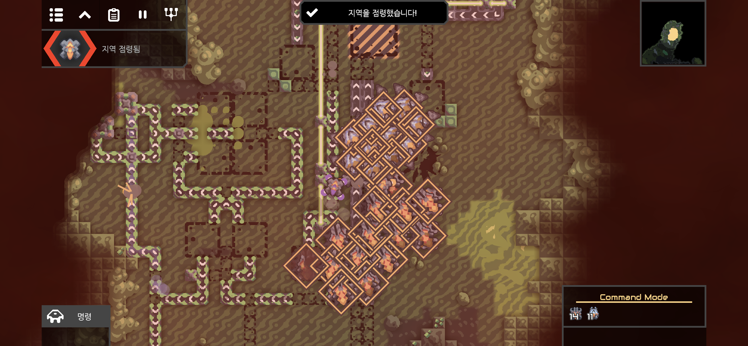 코어 건설 구역에 아군의 코어를 건설하고, 적이 남긴 구조물들은 모두 철거합니다.