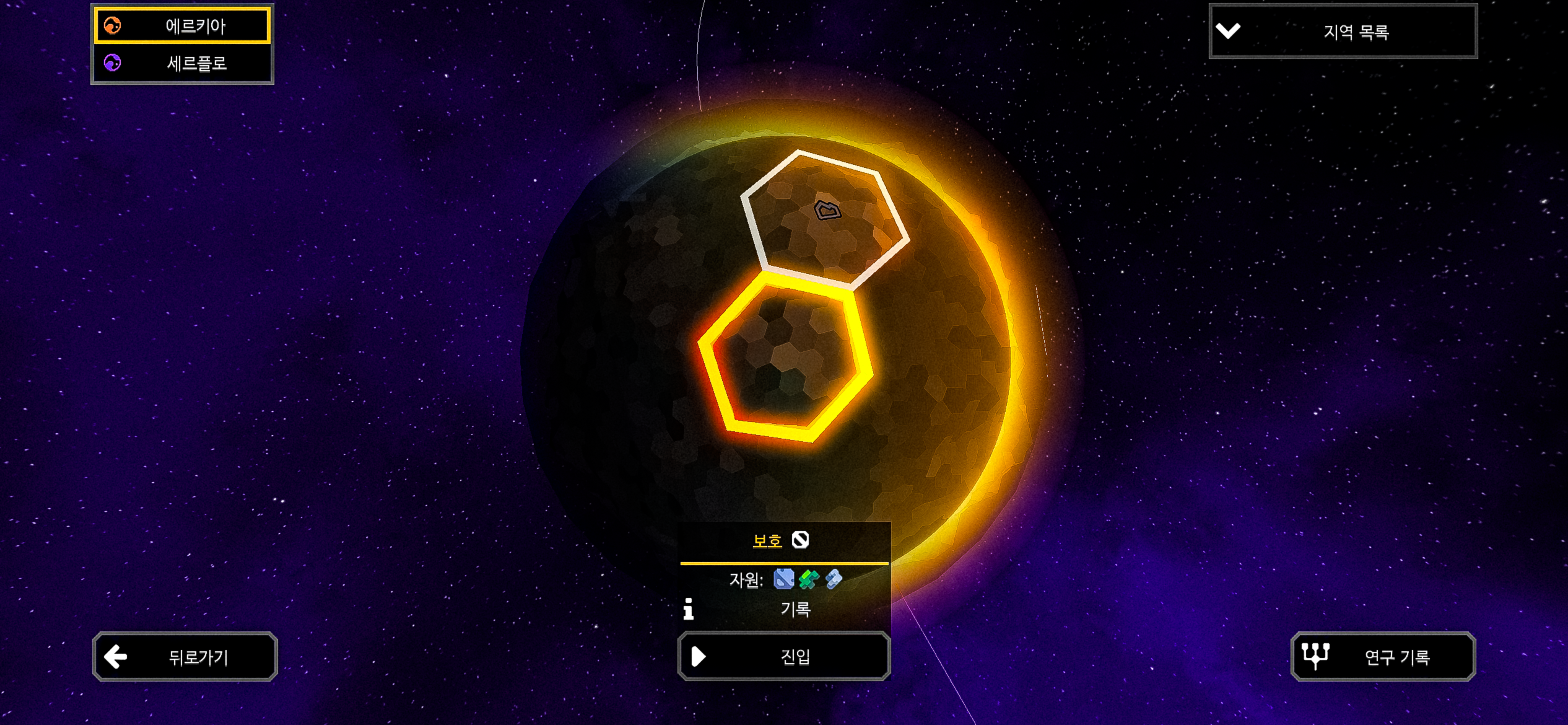 에르키아 행성에서는 인접한 적 기지가 존재해도 침공을 받지 않는 걸까요? 자세한 확인이 필요합니다.
