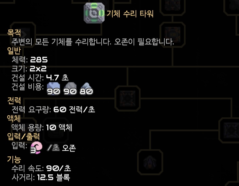 수리 지점과 동일하게 전력이 필요하고, 보다 넓은 수리 범위지만 가동을 위해선 반드시 오존이 필요합니다.