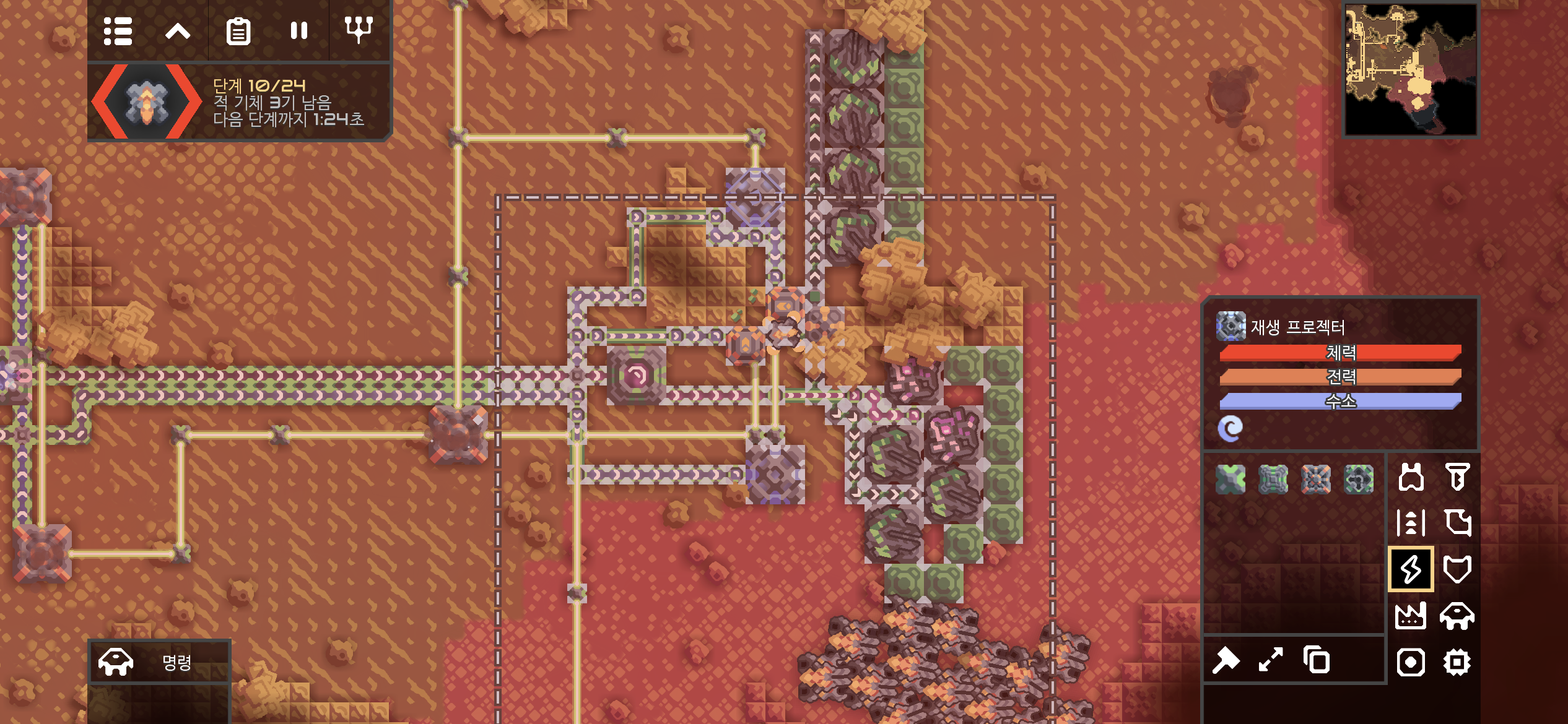 재생 프로젝터까지 배치되어 완벽해진 방어입니다. 재생 프로젝터의 가동에는 전력과 수소가 꼭 필요합니다.