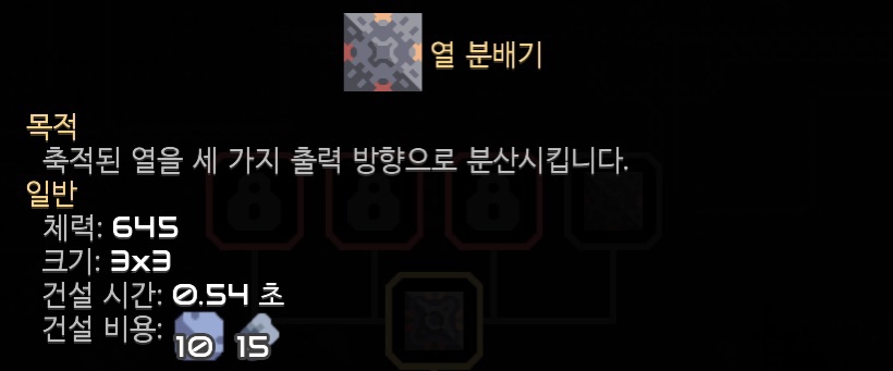 도관 분배기와 동일하게 자원을 세 방향으로 분배하지만 설금 분배기는 설금 컨베이어와 같이 전력이 필요한데 조금 더 많은 전력을 소모합니다.