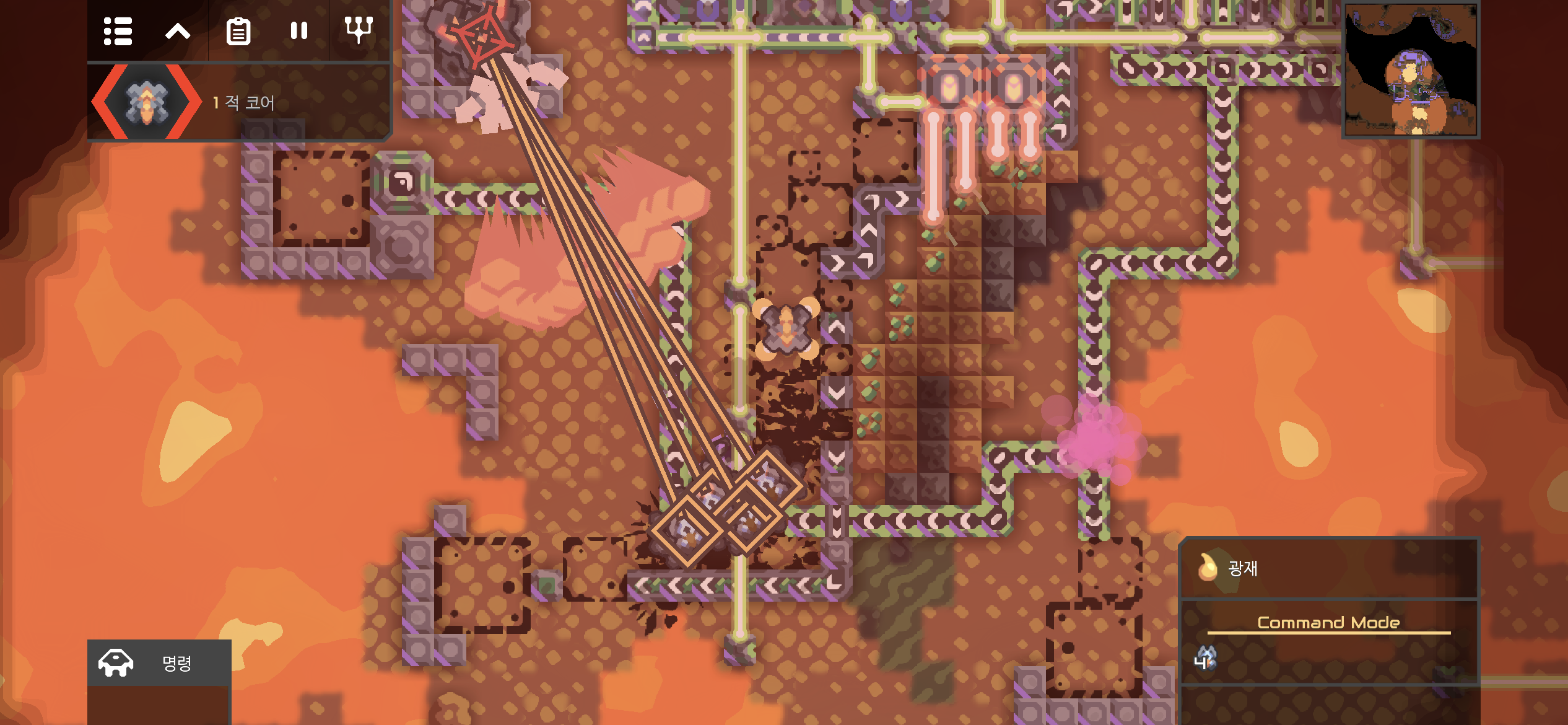 용암에 둘러싸인 섬 한가운데 코어가 자리를 잡았네요. 보기만 해도 너무 뜨겁..!!