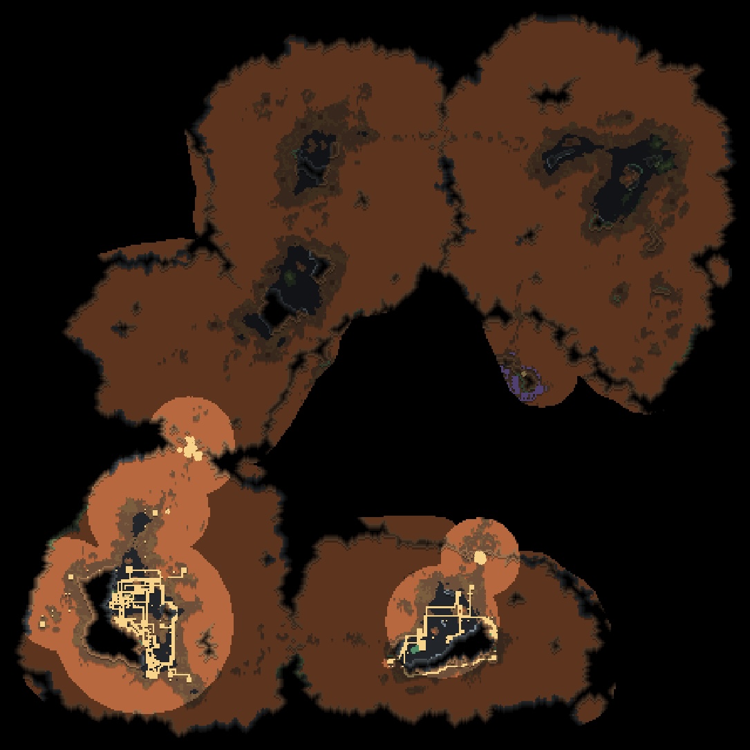 유역에서부터 출발한 코어가 칼데라에 도착하자, 이번에도 소량의 건물과 구조물들이 자동으로 배치됩니다.