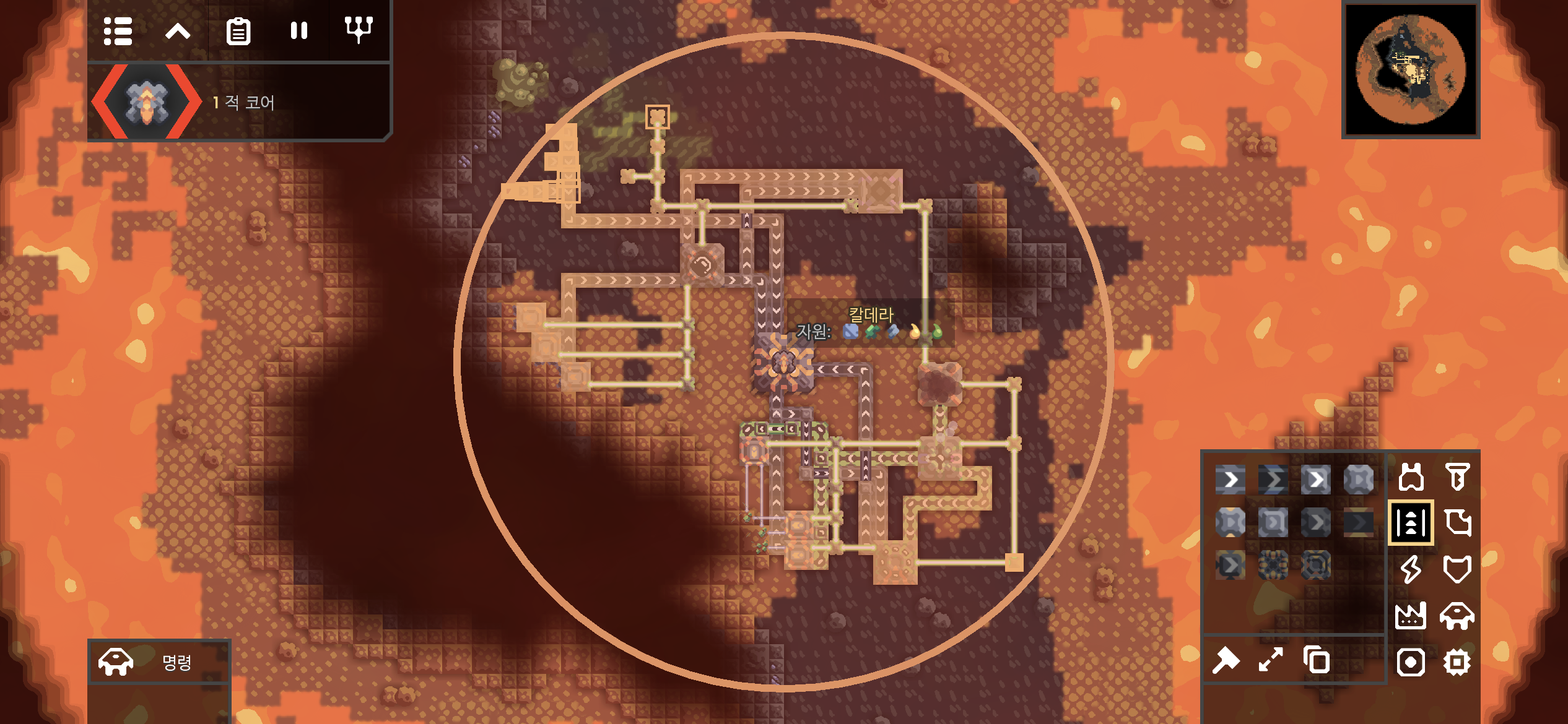 적 코어가 자리했던 위치에 아군의 추가 코어를 건설하고 약간의 자원 생산 시설을 배치해봅니다.
