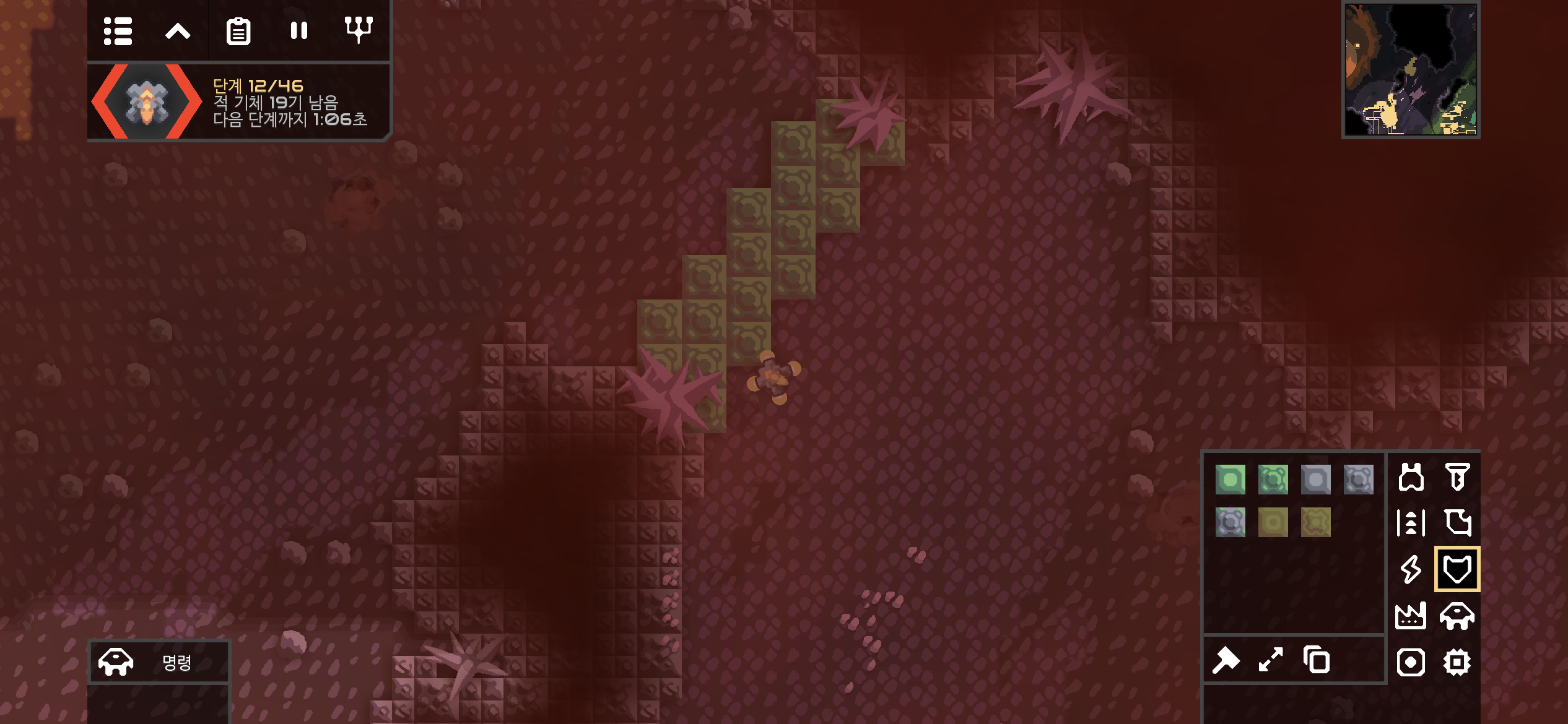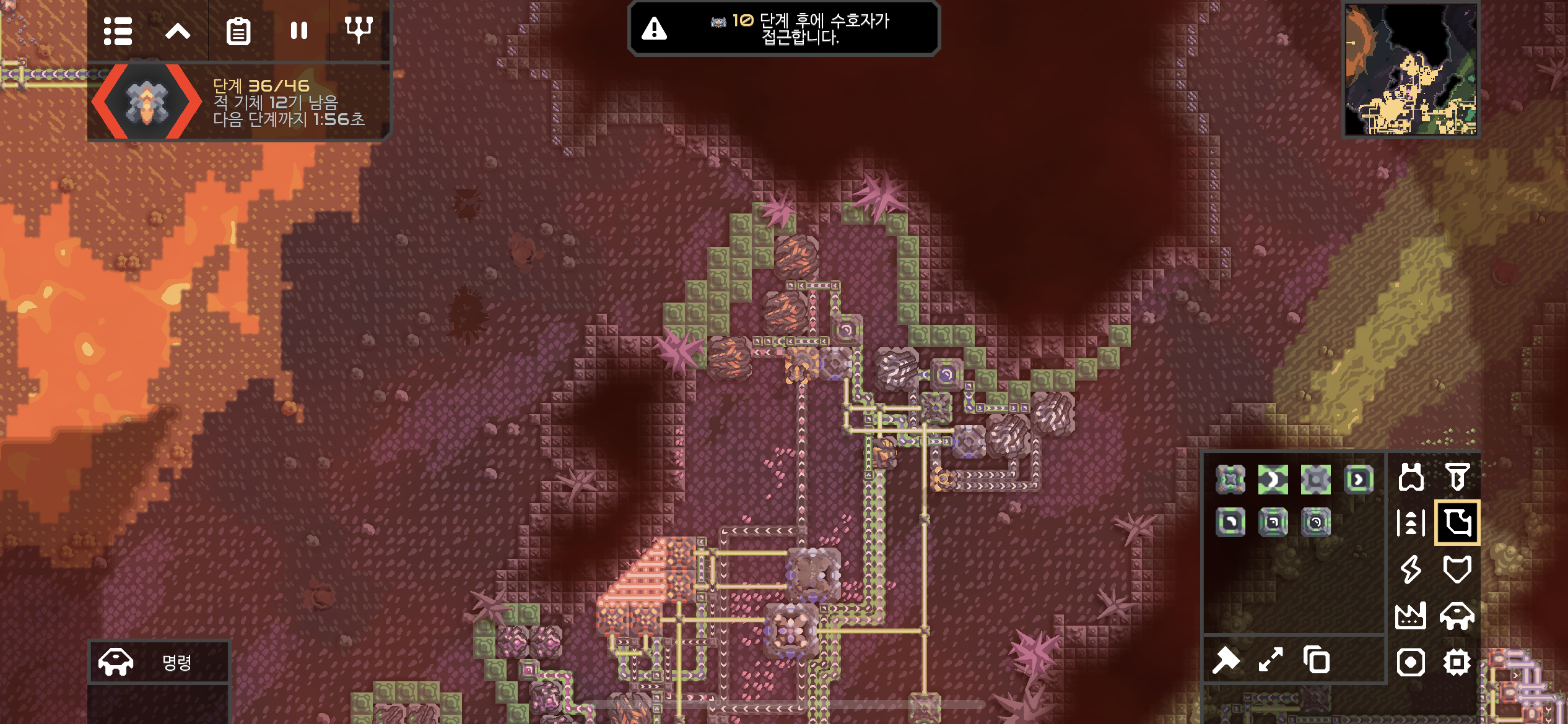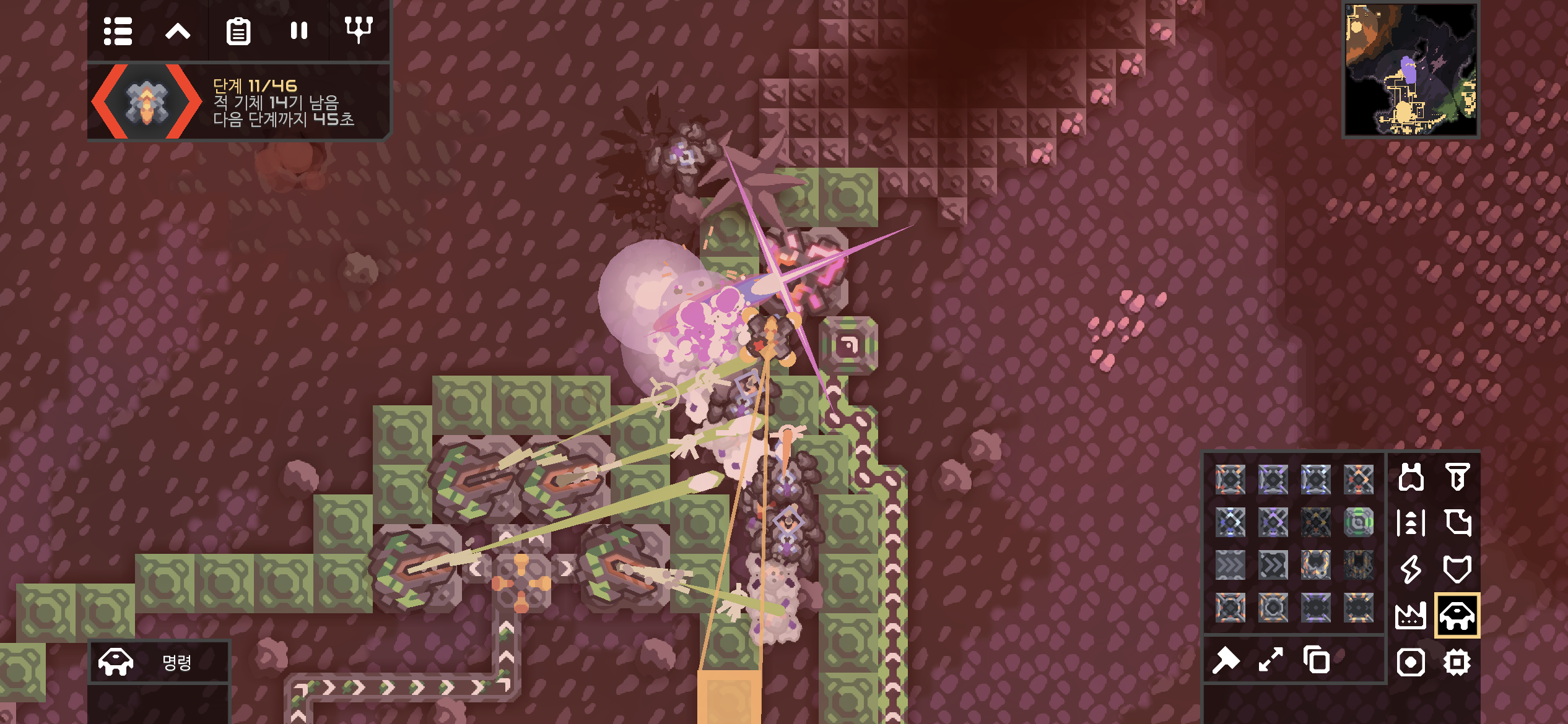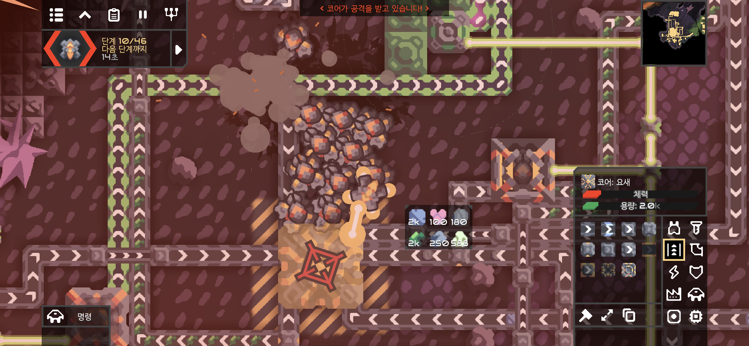 매 단계 공격해오는 적이 점점 강해지다가 코어가 파괴될 뻔하기도 합니다. 미리 생산해둔 스텔 덕에 코어가 파괴되지는 않았습니다.