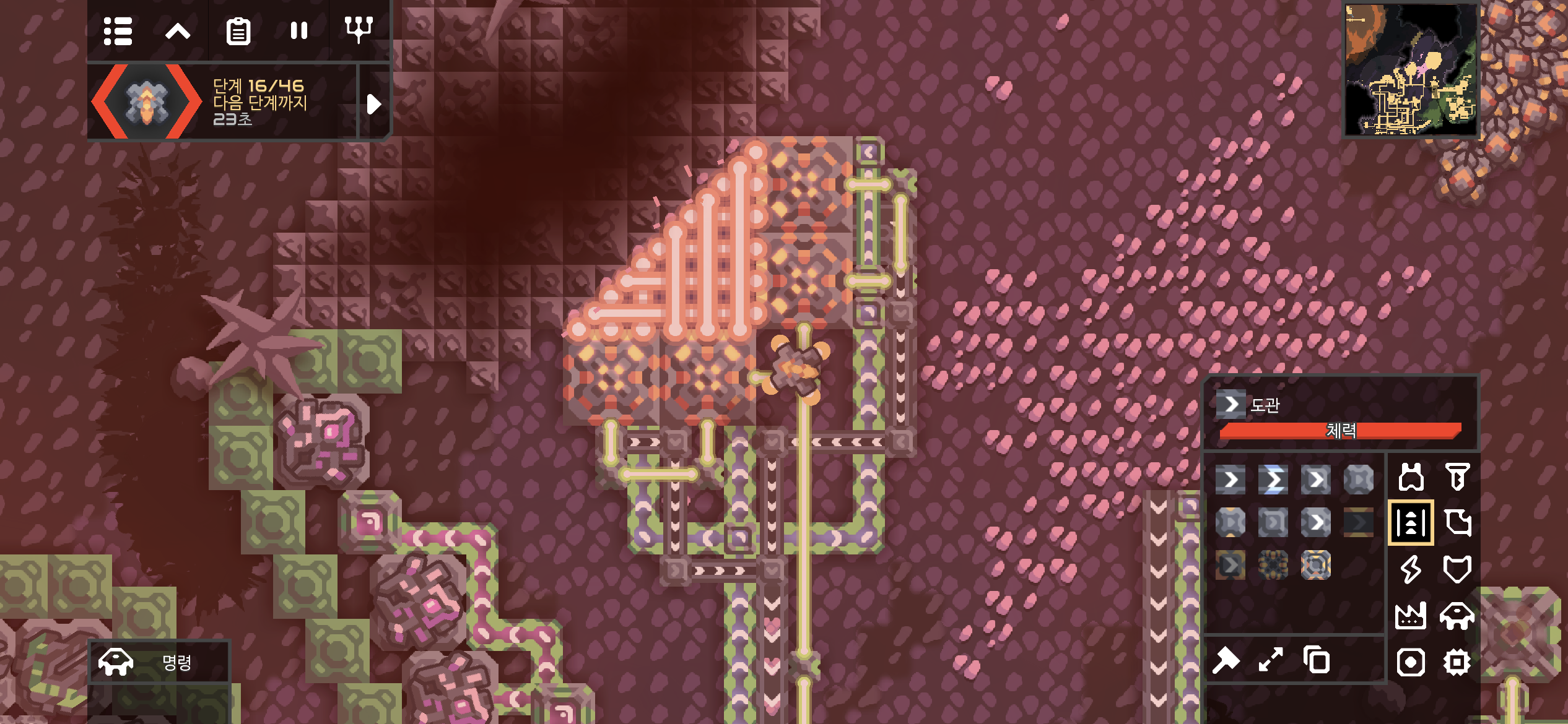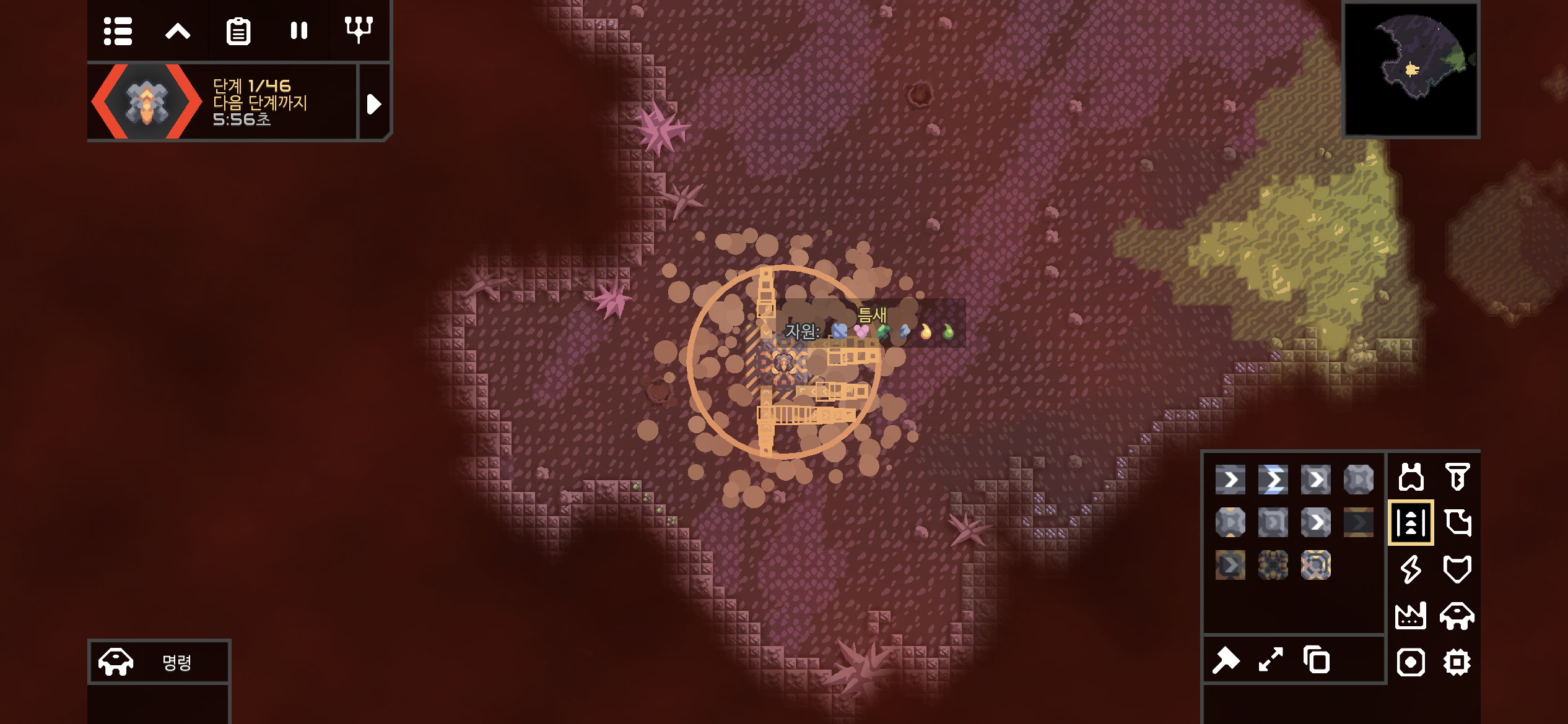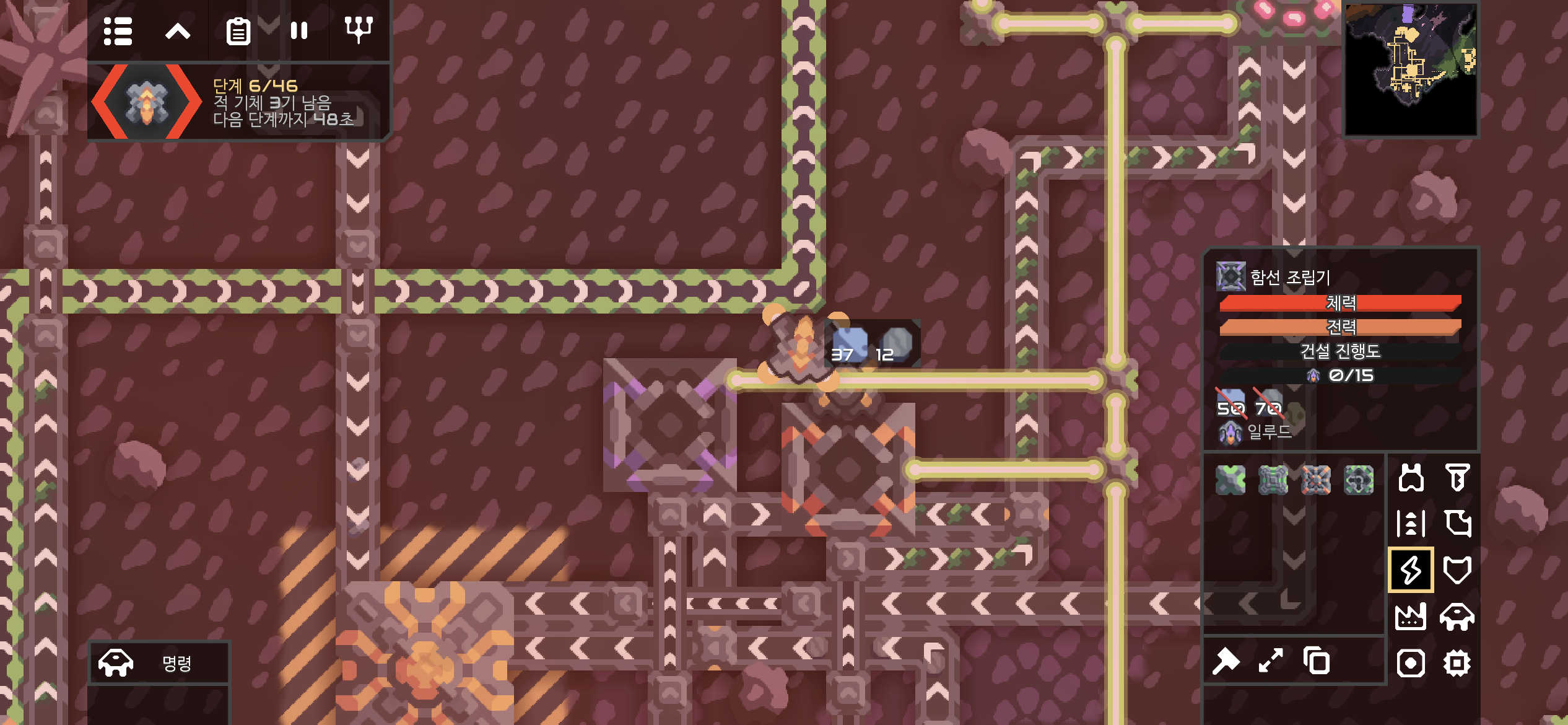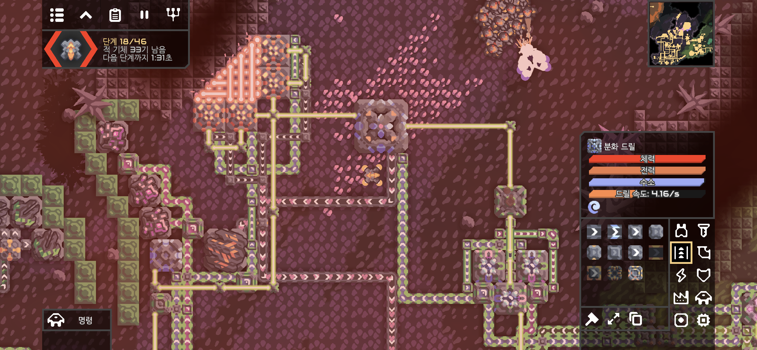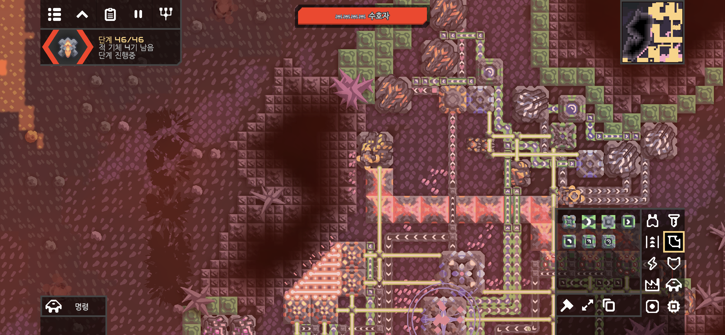 매 단계 공격해오는 적이 점점 강해지다가 코어가 파괴될 뻔하기도 합니다. 미리 생산해둔 스텔 덕에 코어가 파괴되지는 않았습니다.