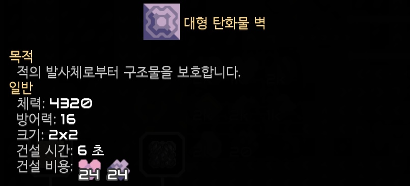 탄화물 벽과 대형 탄화물 벽은 효과나 능력이 없지만 엄청나게 높은 체력을 자랑합니다.