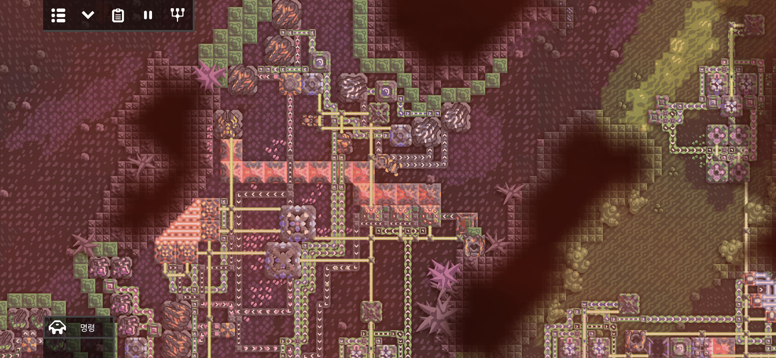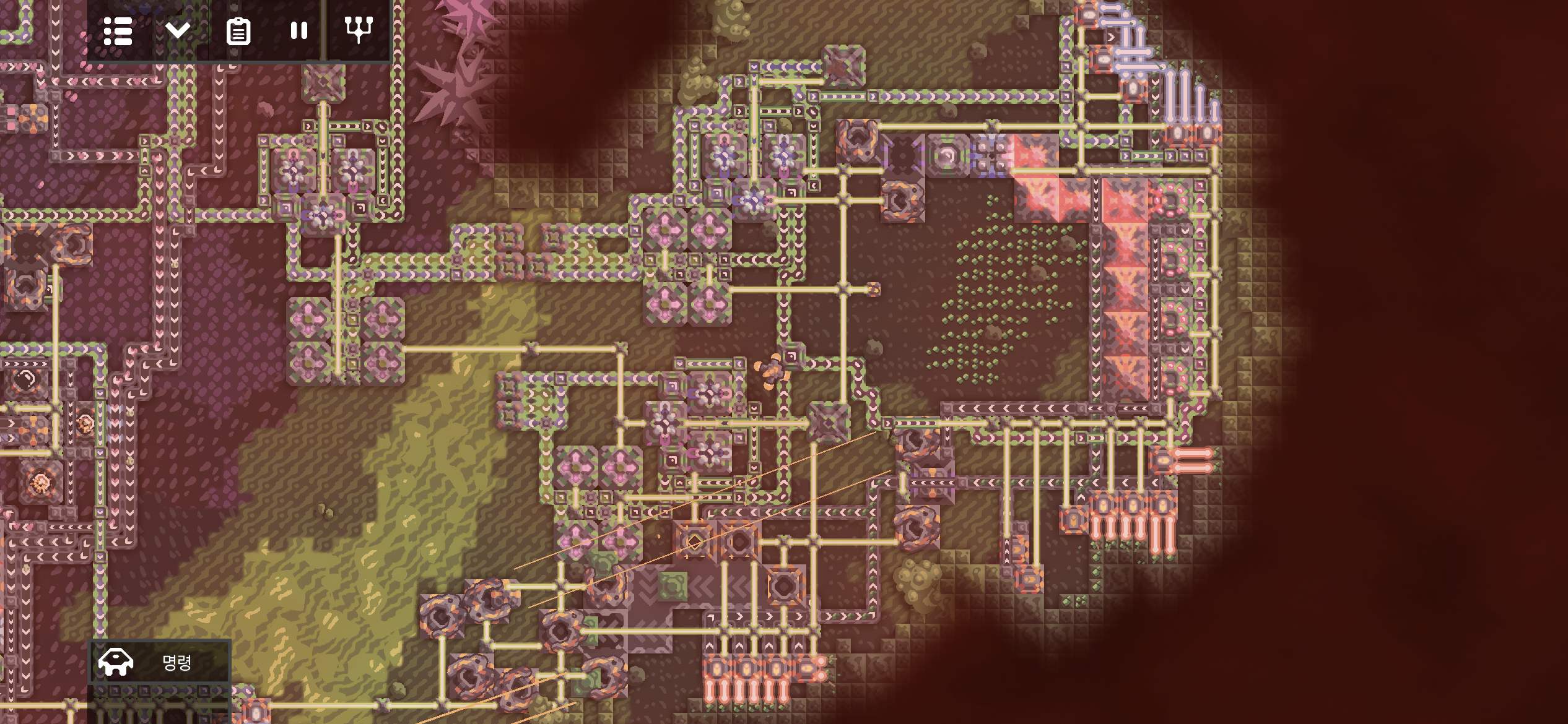 시작 코어 오른쪽에 아르키사이트가 잔뜩 있고, 그 너머서 생산된 베릴륨이, 베릴륨 벽으로 만들어져 시작 코어 방면으로 운송되고 있습니다.