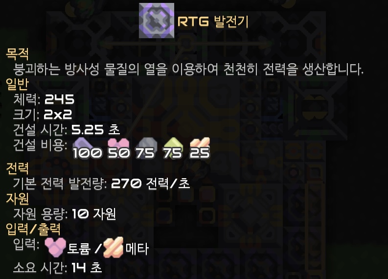이번 시작 코어 설계도에는 토륨을 재료로 발전을 하는 RTG 발전기가 포함되어 있습니다. 그리고 발전이 시작됨과 동시에 모노와 폴리가 생산되는 코어 설계도입니다.