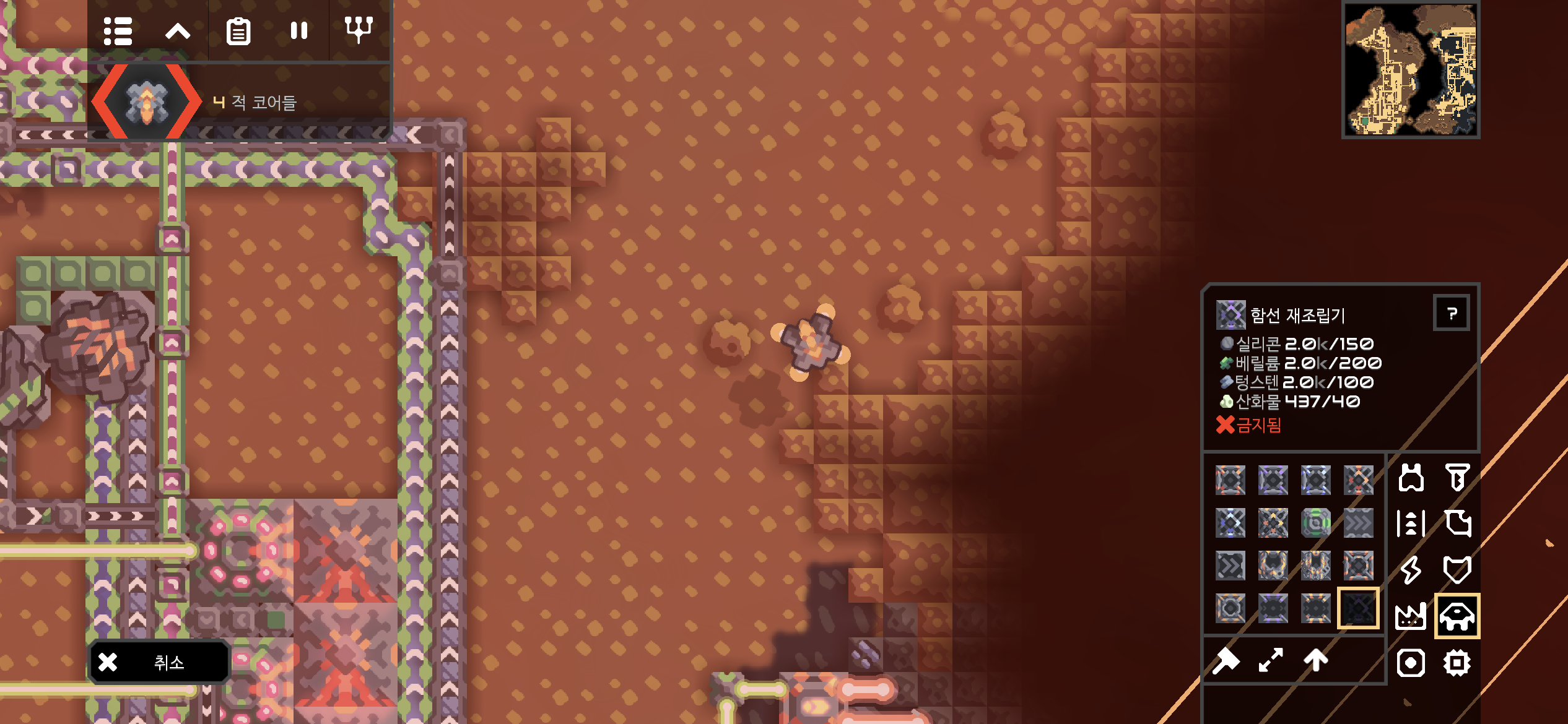 | #89 에르키아 거점 공략 적 기지 점령 - Mindustry 민더스트리 마인더스트리 공략 (1) | 2022.12.16 |