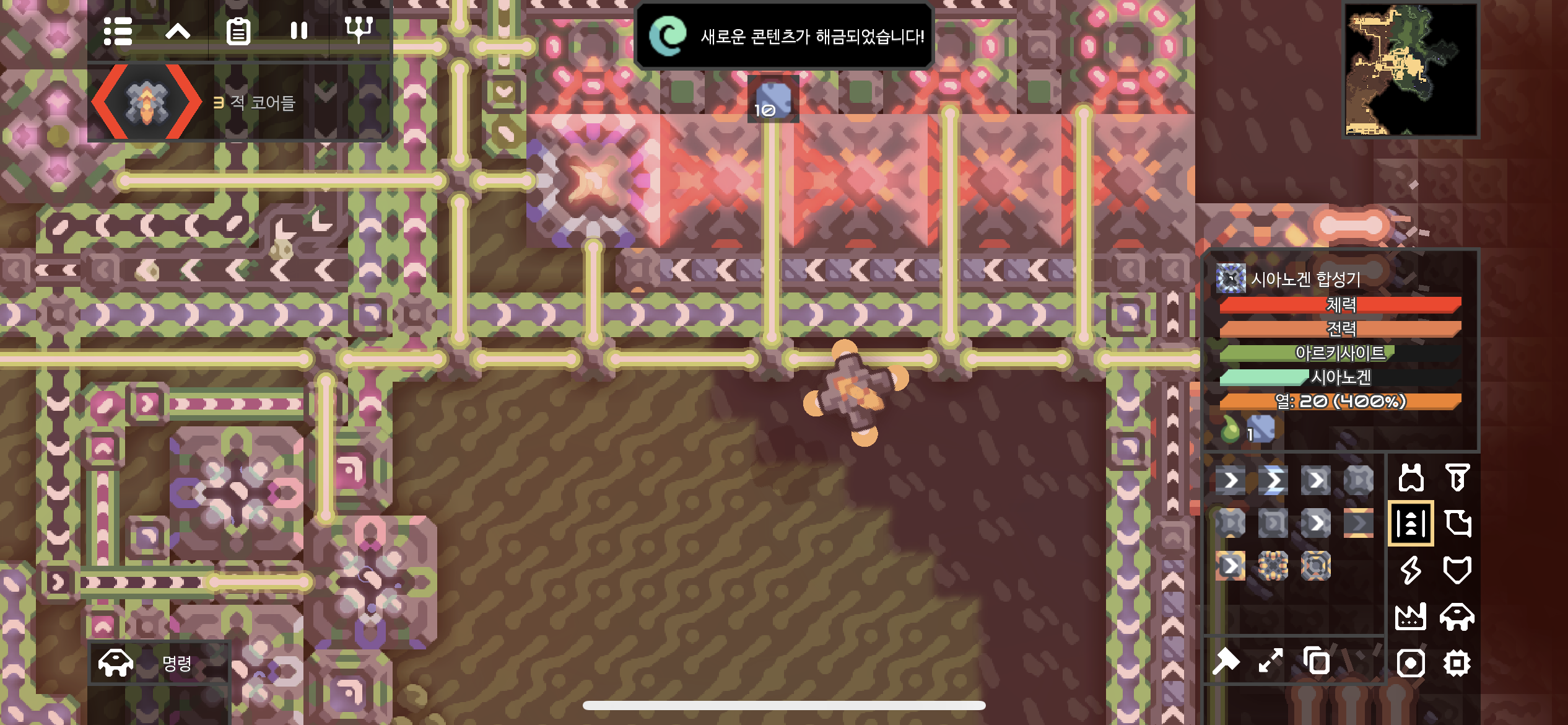 고급 자원인 시아노겐을 생산하니 새로운 콘텐츠가 해금되었습니다.