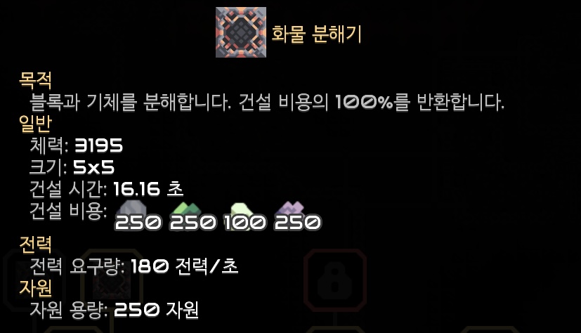 화물 분해기는 입력된 블록이나 기체를 분해하여 100% 의 자원으로 반환합니다.