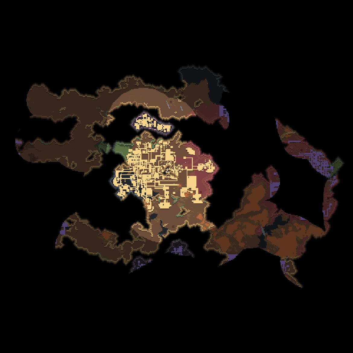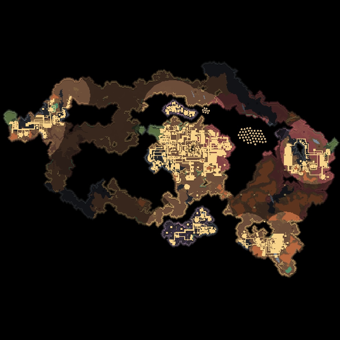 적의 공격을 방어하기 위한 많은 터렛들과, 자원과 유닛을 생산하기 위한 여러 시설들이 시작 코어의 주변에 빼곡히 위치하고 있습니다. 몇몇 터렛들이 고개를 돌리고 있는 방향이 적이 주로 공격해 오는 방향과 거의 일치합니다.