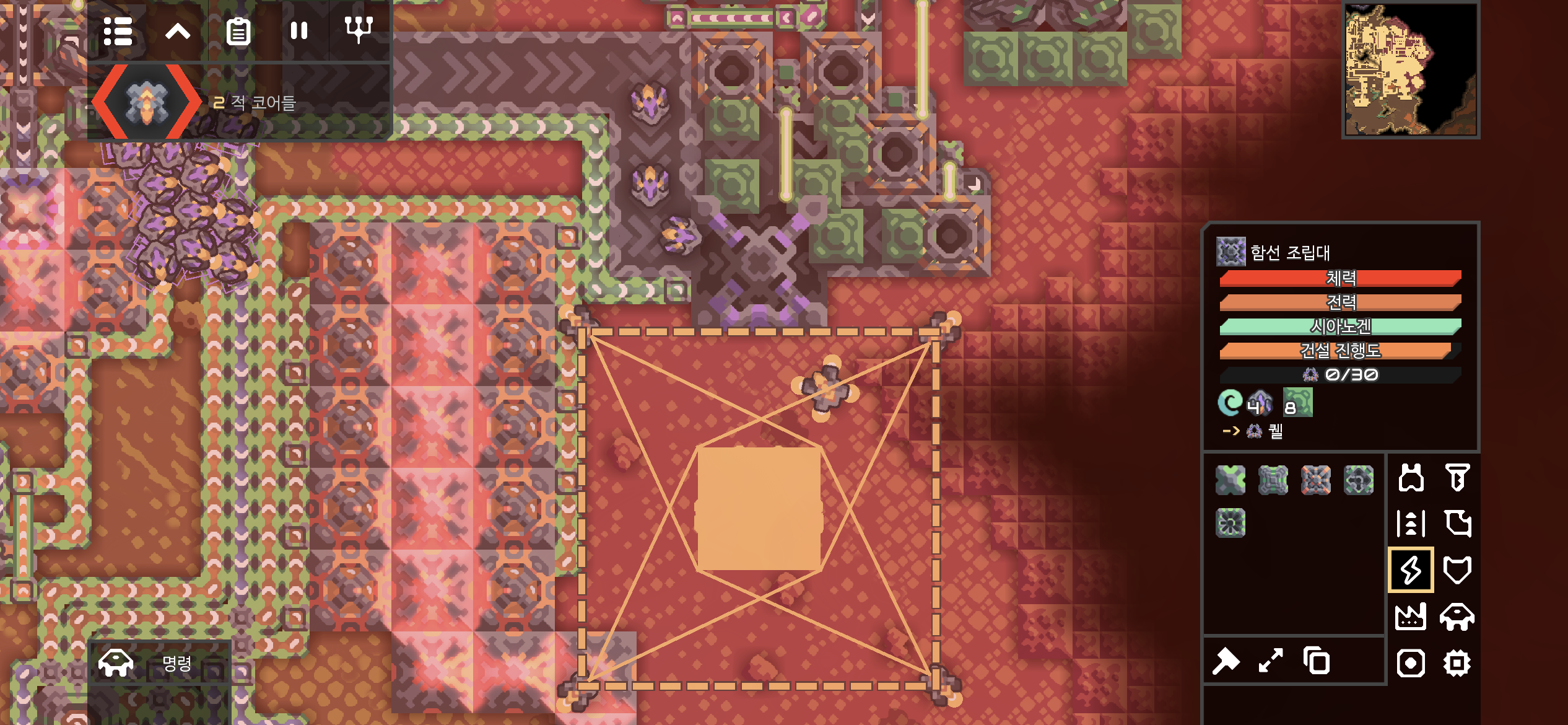 마지막 세 번째 적 코어(시작 코어의 서쪽, 왼쪽)를 파괴하고 건설된 시설들!