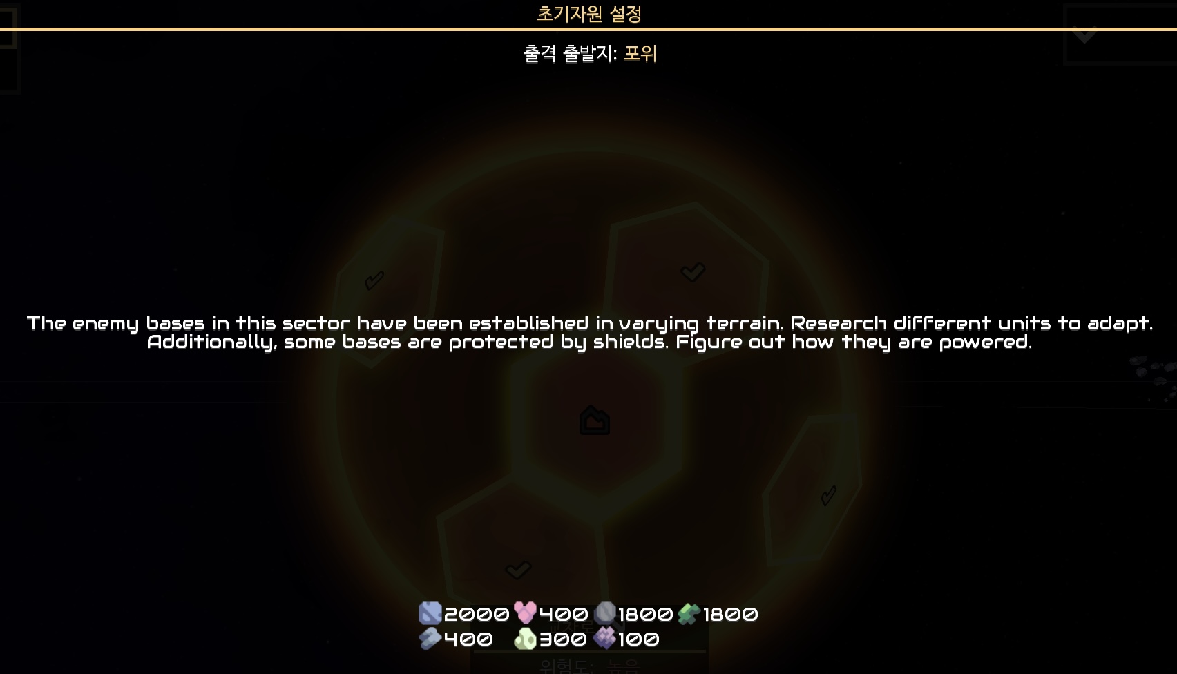 이 구역의 적 기지는 다양한 지역에 설립되어 있습니다. 적응을 위한 다른 유닛들을 연구하세요.