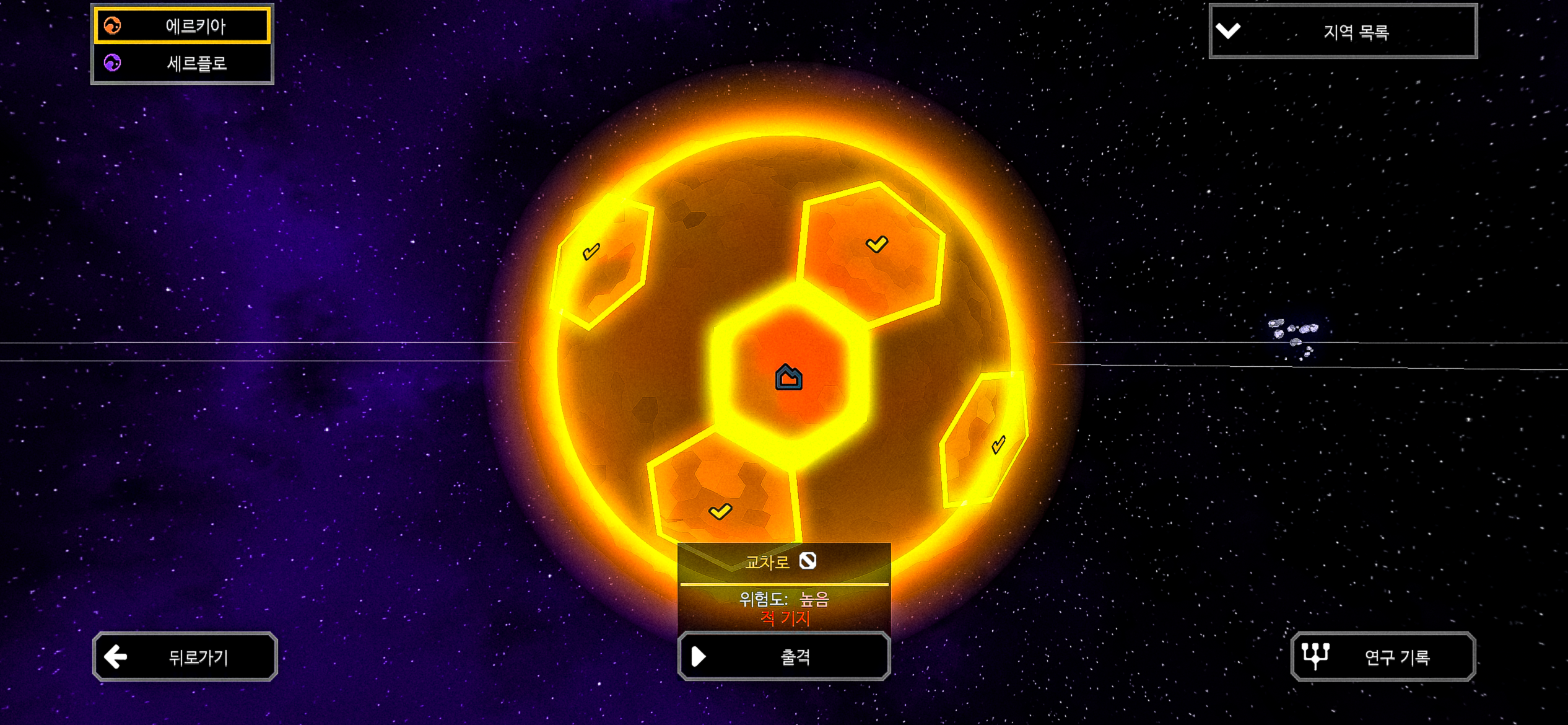 새로운 네임드 섹터마다 매번 새로운 콘텐츠가 등장하고 있는 아주 재미있는 에르키아 행성입니다. 이번에는 위험도 높음의 적 기지, 교차로를 공략합니다.
