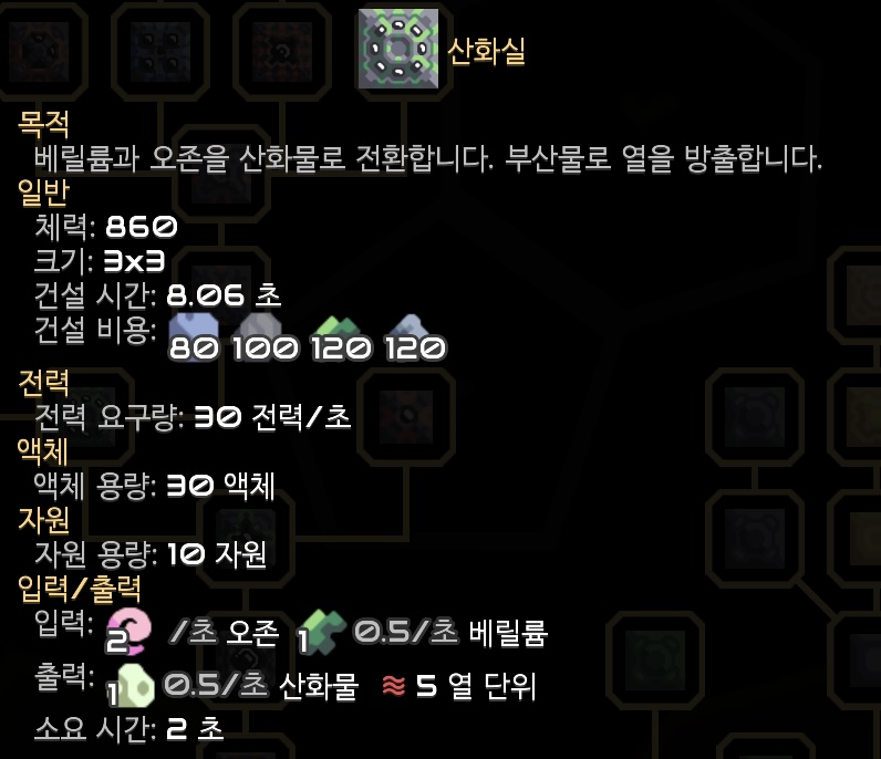 산화물을 생산하는 산화물 공장의 설계도 입니다. 에르키아 행성의 산화물은 실리콘의 다음으로 해금되는 콘텐츠이며, 산화실에서 생산됩니다.