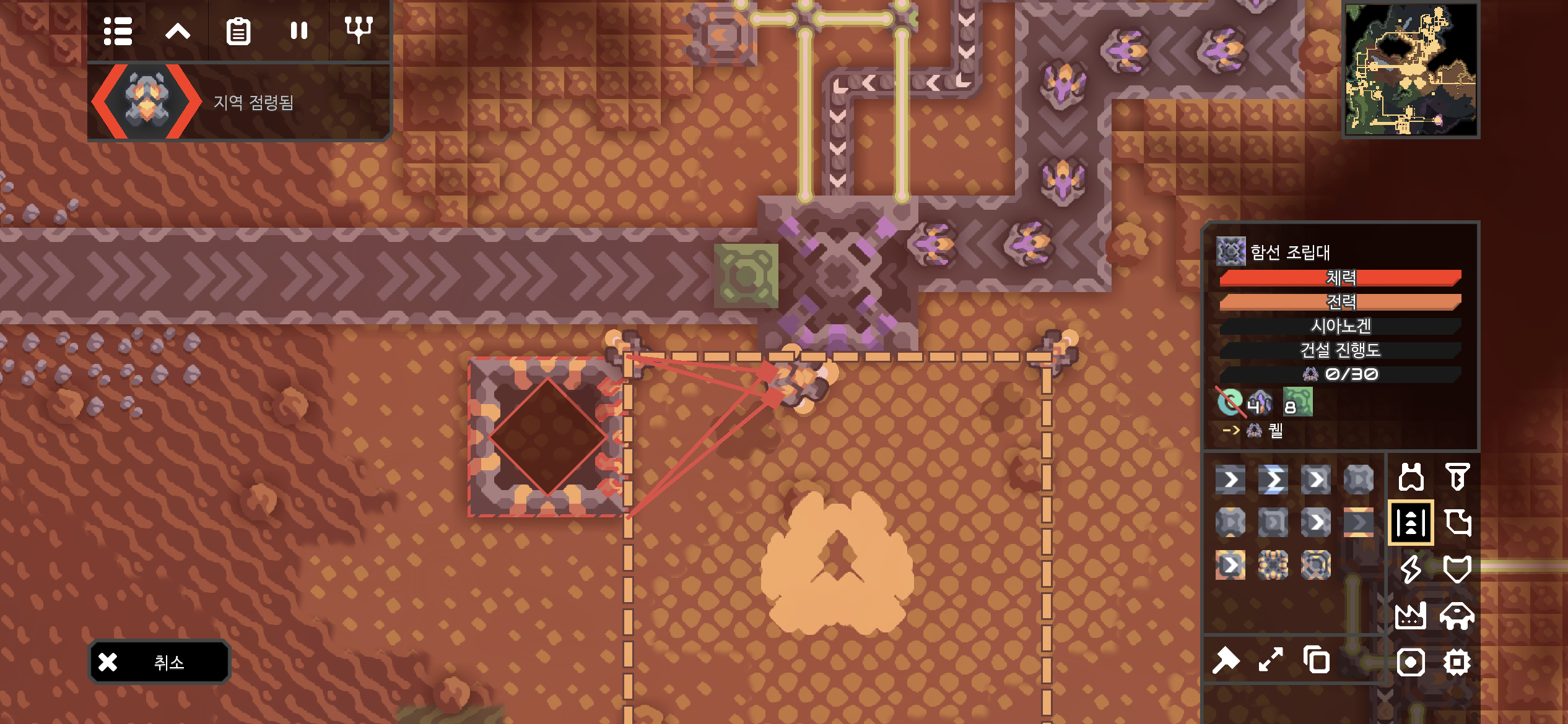평화가 찾아온 카르스트의 코어 건설이 가능한 구역에 코어를 배치해 봅니다.