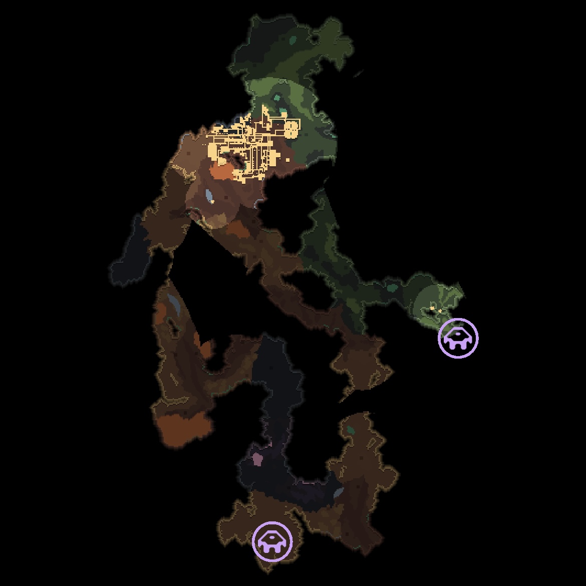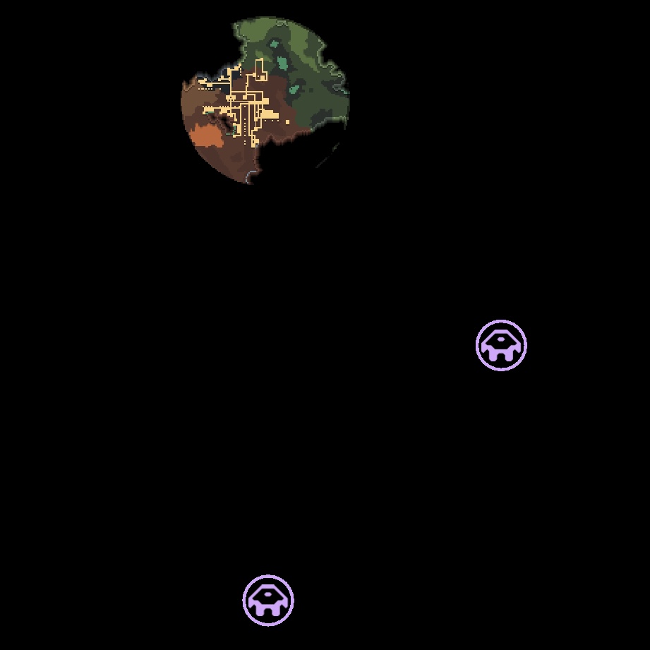 카르스트의 미니맵. 코어가 건설 가능한 구역은 시작 코어를 포함해 총 두 곳이 있습니다.