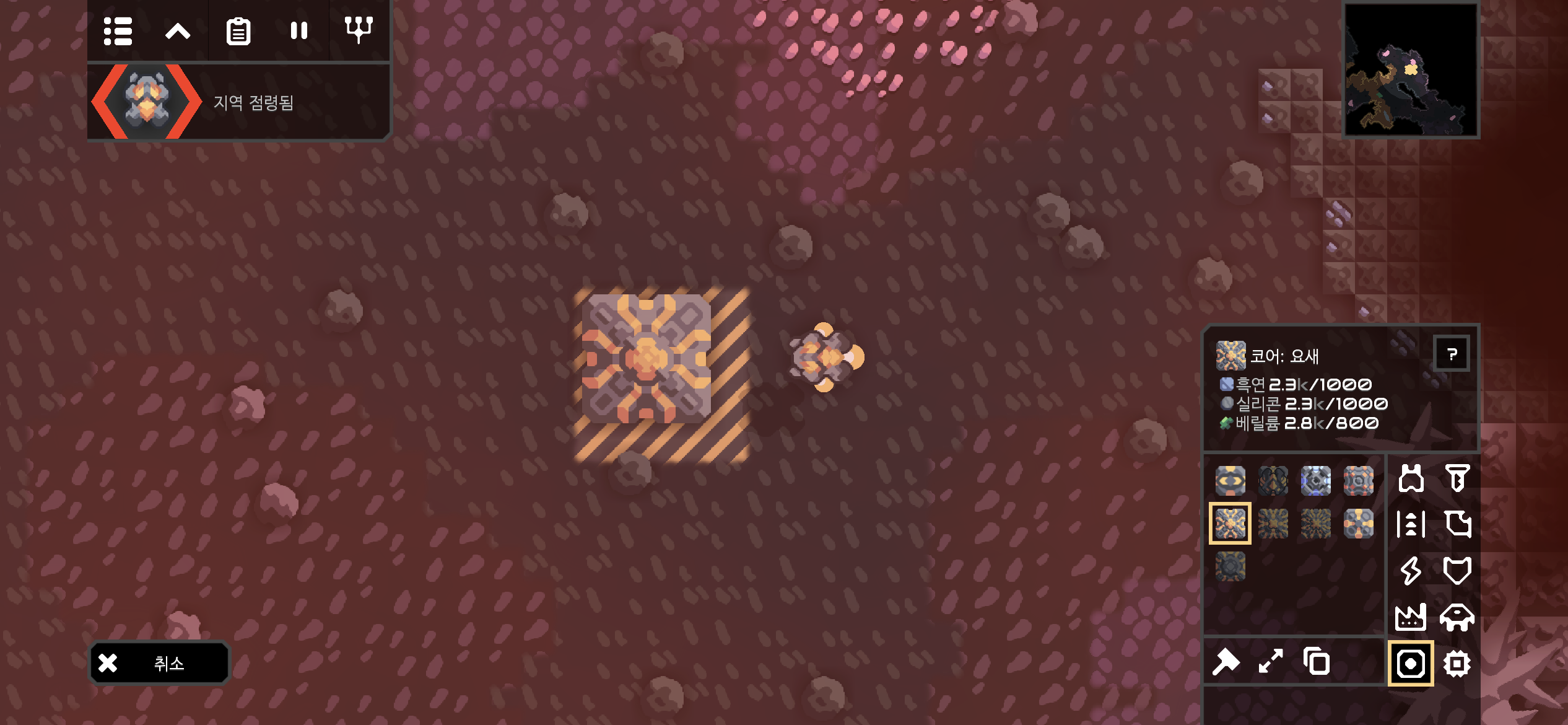 시작 코어의 동쪽에는 코어를 건설 가능한 구역이 있네요. 하지만 아직 코어를 늘릴 생각은 없습니다.