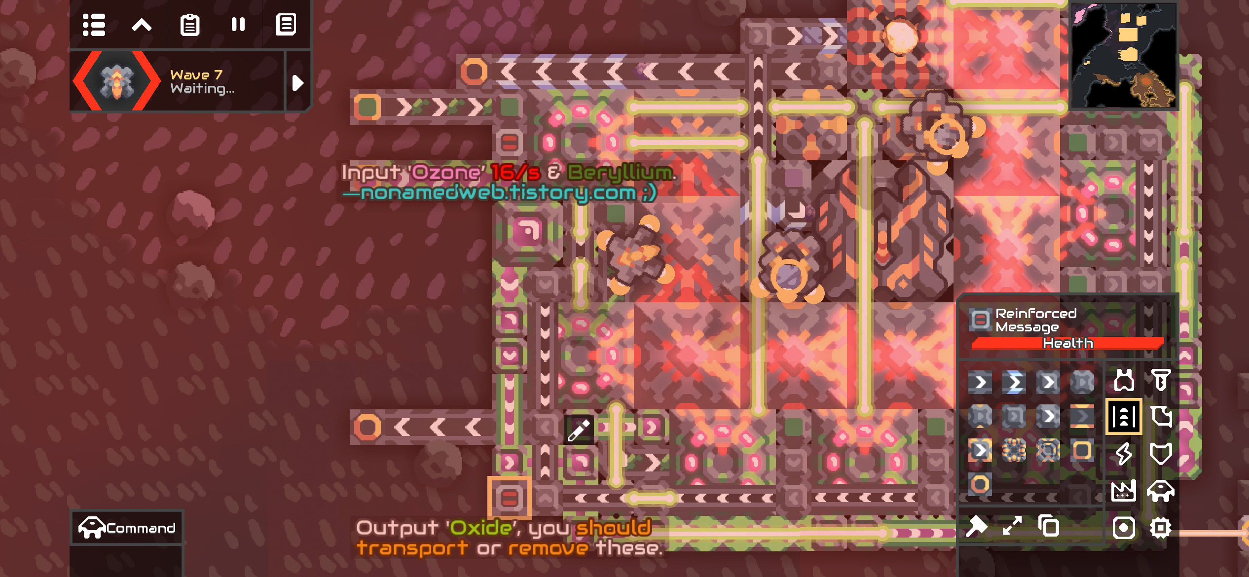4. 보강된 메모 블록에 사용 설명을 써놨습니다. 베릴륨으로 설정된 필터엔 베릴륨을 공급하고, 보강된 액체 컨테이너로 오존을 16/s이상으로 공급하면 문제없이 가동됩니다.