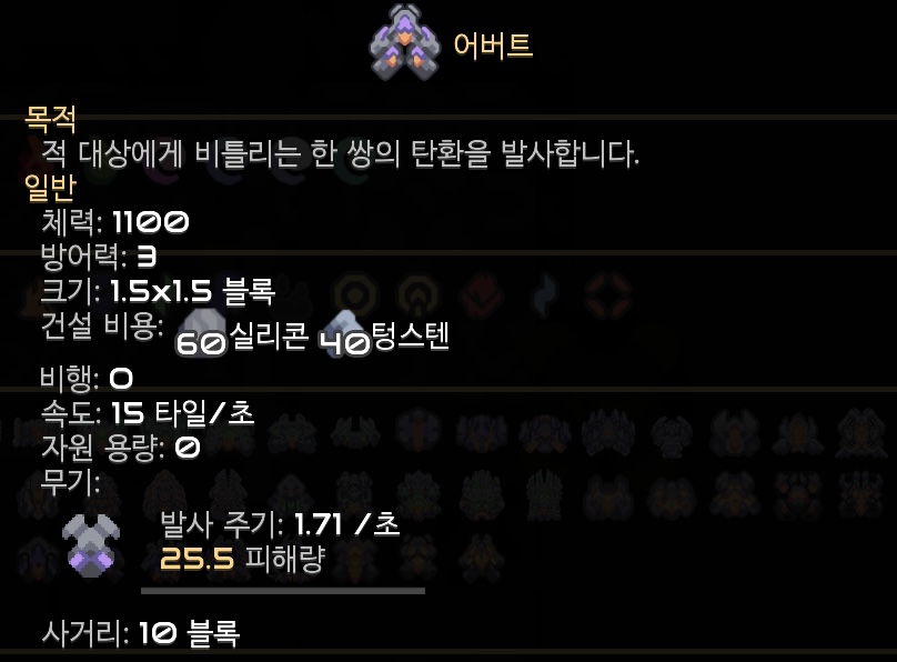 게다가 에르키아 행성의 비행 유닛은 대체적으로 사거리가 긴 편인데, 유독 어버트의 사거리만 10으로 에르키아 행성의 모든 유닛과 터렛들 중 가장 짧습니다.
