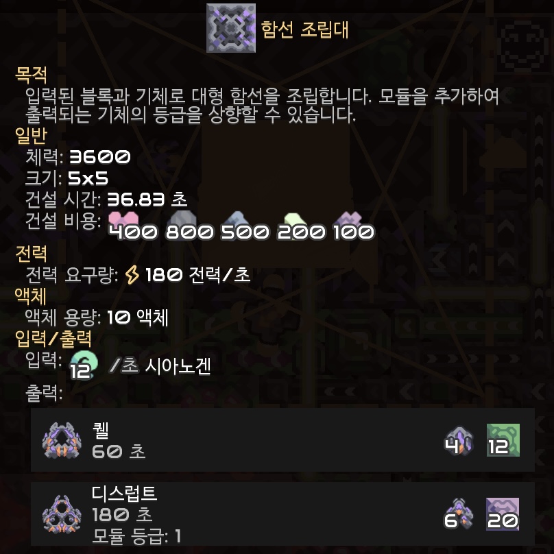 4 티어 함선(공중) 유닛 퀠을 생산하는 설계도입니다.