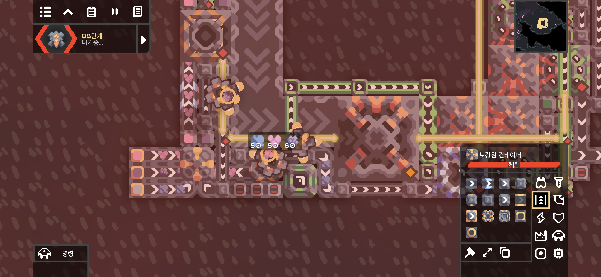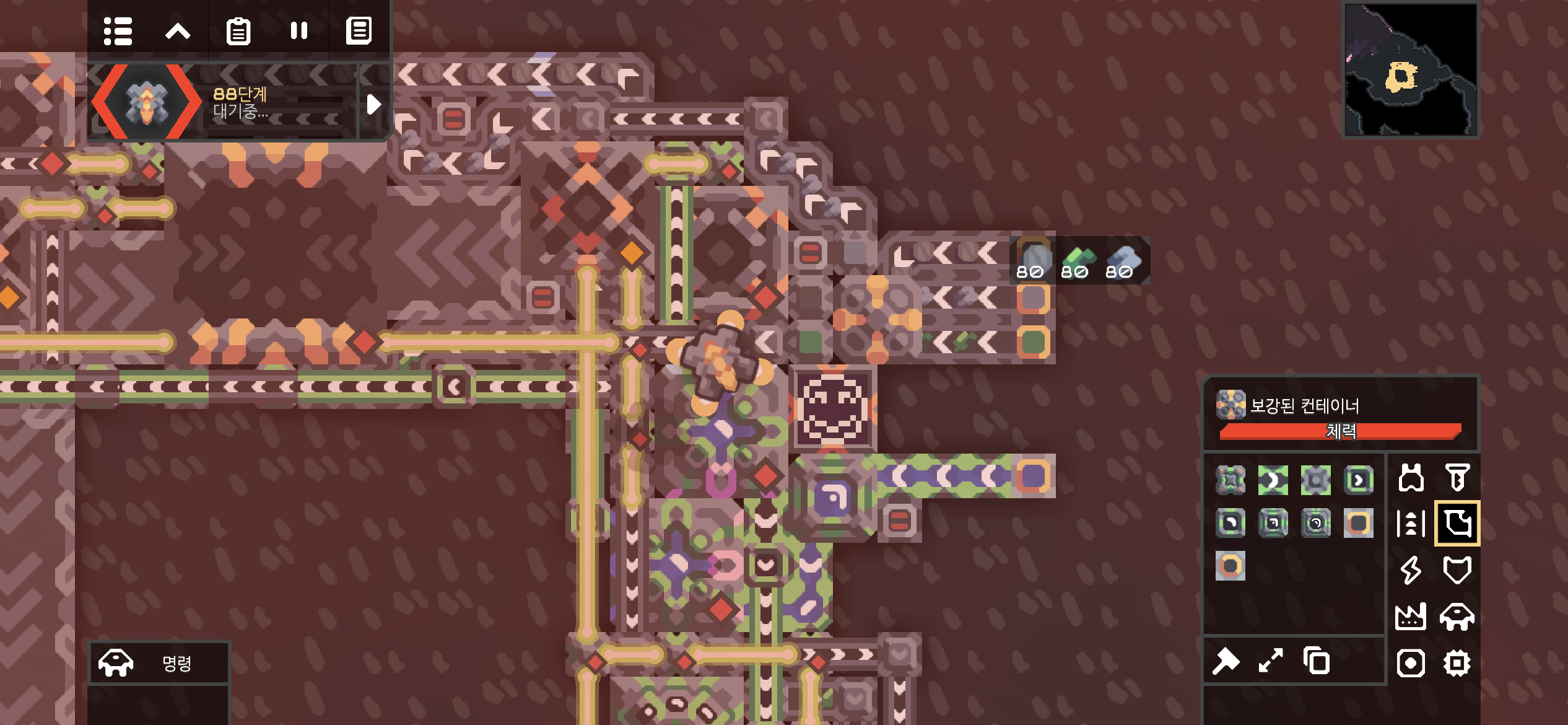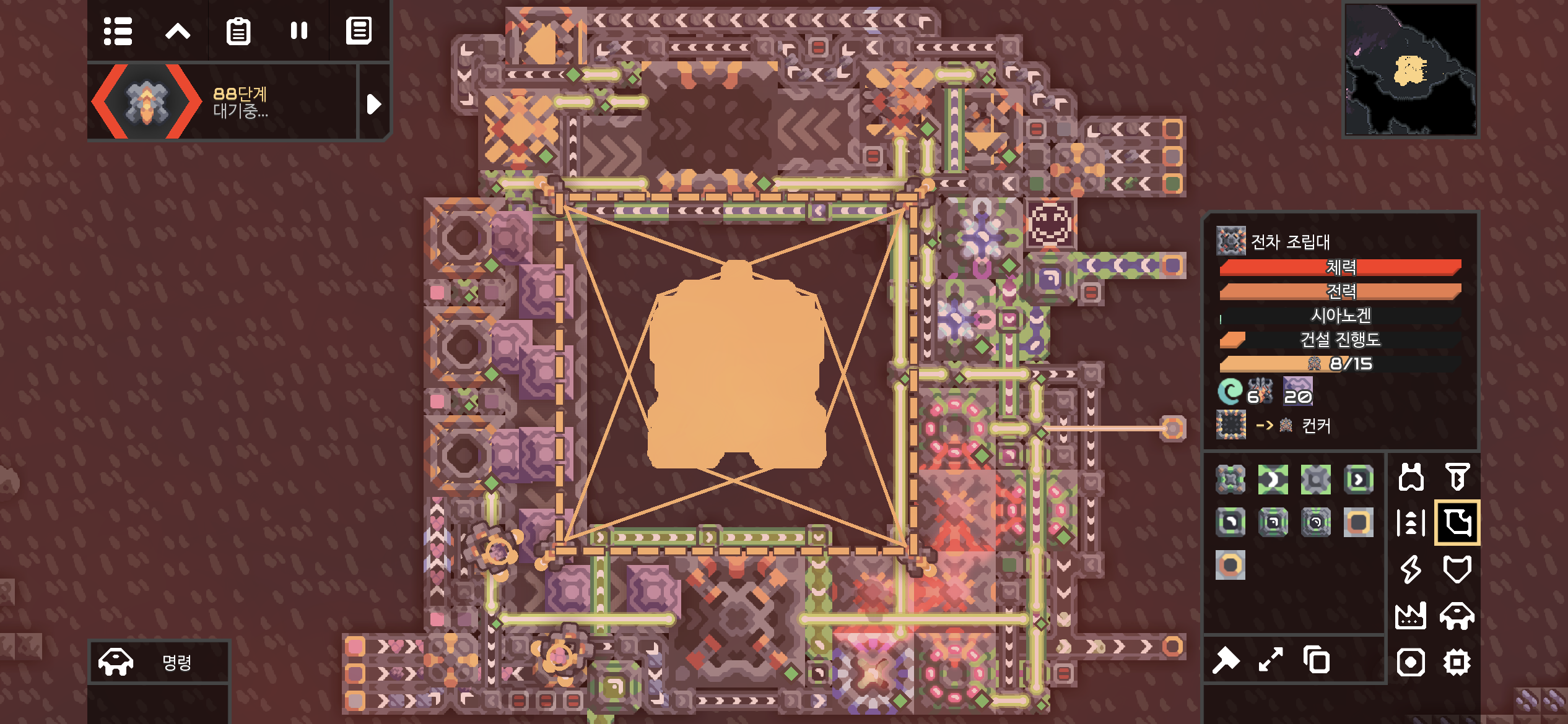 여러 시설들에 유닛 조립 영역이 둘러싸여 있지만 생산된 컨커는 잘 빠져나가서 전혀 문제없습니다.