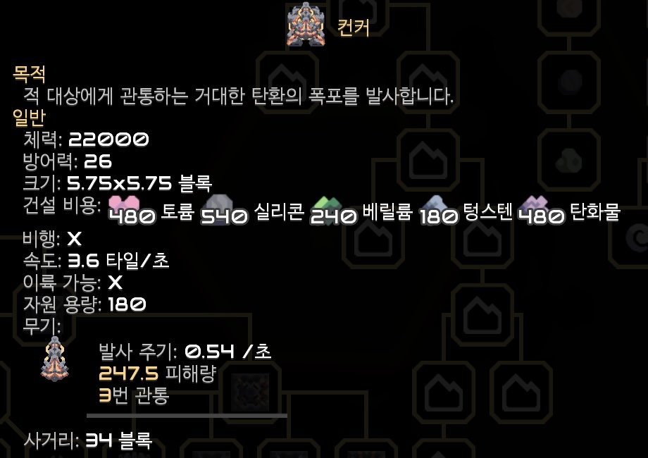 컨커는 엄청나게 높은 체력과 방어력, 적을 세 번이나 관통하는 공격 능력 등 훌륭한 스탯을 갖춘 에르키아 행성의 5 티어 전차 유닛입니다.