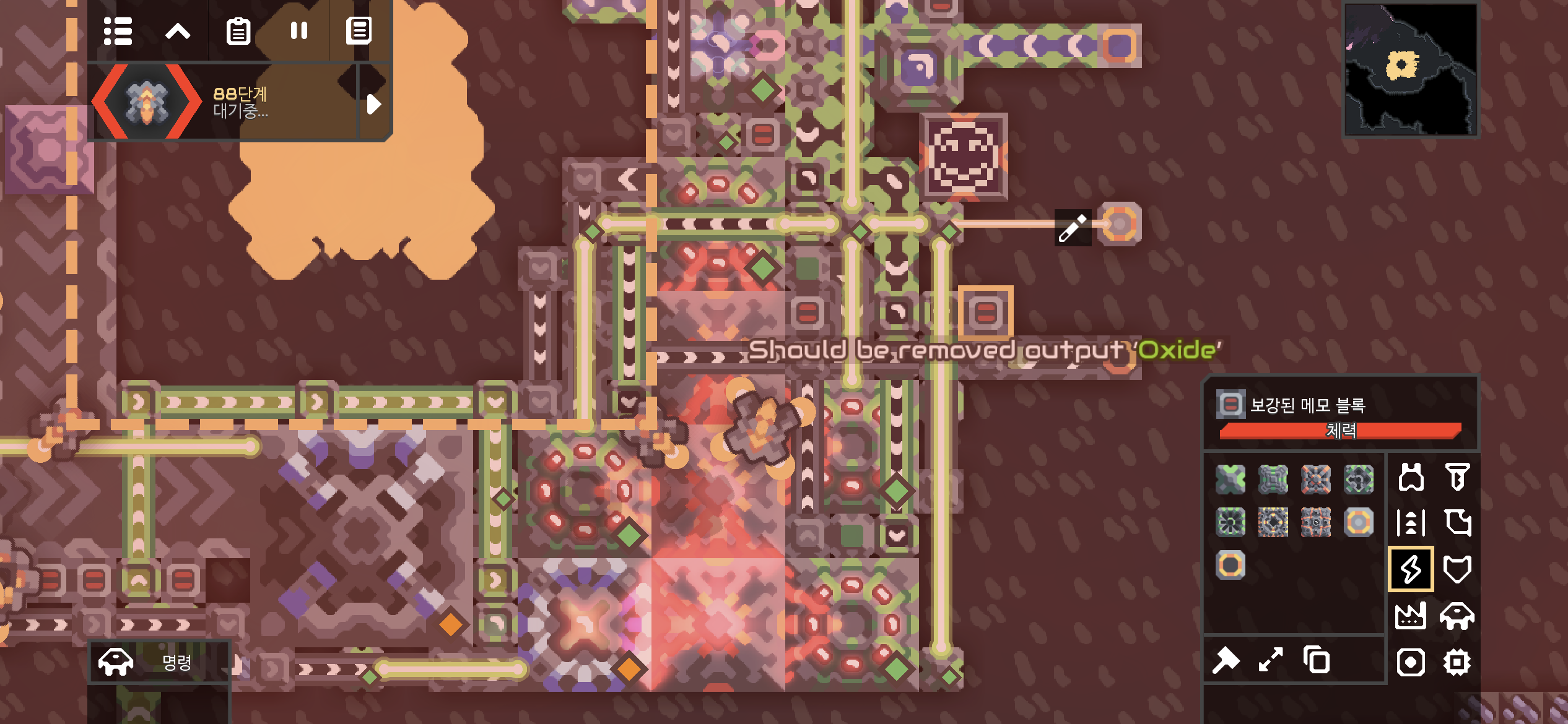 네 대의 산화실에서 생산되는 산화물은 소각하거나 코어까지 운송해 주세요.