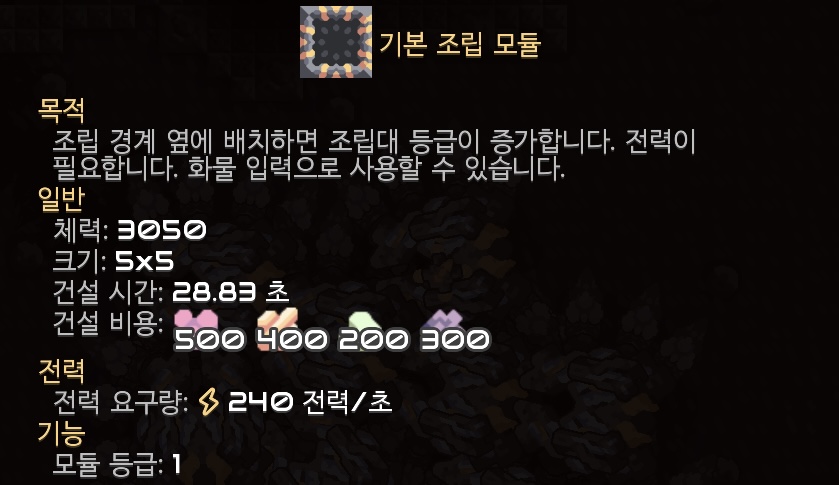 *기본 조립 모듈이 건설되지 않으면 5 티어 유닛 콜라리스가 아닌, 4 티어 유닛 텍타가 생산됩니다.