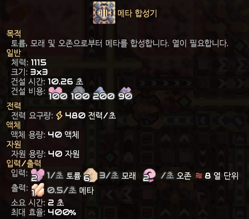 카르스트에 진입 시 해금되는 메타 합성기는 토륨과 모래, 오존을 메타로 합성합니다.