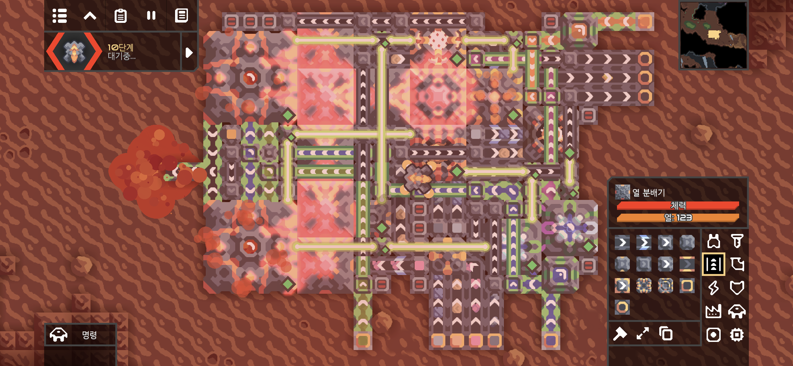 바로 신생물 반응로에서 함께 생산되는 부산물 신생물인데요, 설계도에서 보강된 파이프를 최소 두 개 이상은 추가해서 연결해야 신생물이 다른 건물로 퍼지지 않습니다.