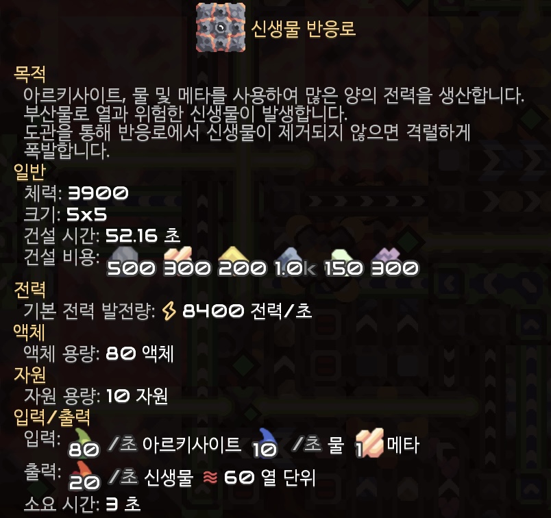 바로 신생물 반응로에서 함께 생산되는 부산물 신생물인데요, 설계도에서 보강된 파이프최소 두 개 이상은 추가해서 연결해야 신생물이 다른 건물로 퍼지지 않습니다.