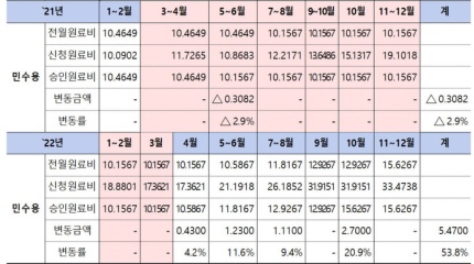 2022년 4월에 4.2%, 5~6월 11.6%, 7~8월 9.4%, 10월 20.9%가 인상되었습니다. 9월과 11~12월은 전월과 동일한 가스 요금으로 동결되었습니다.