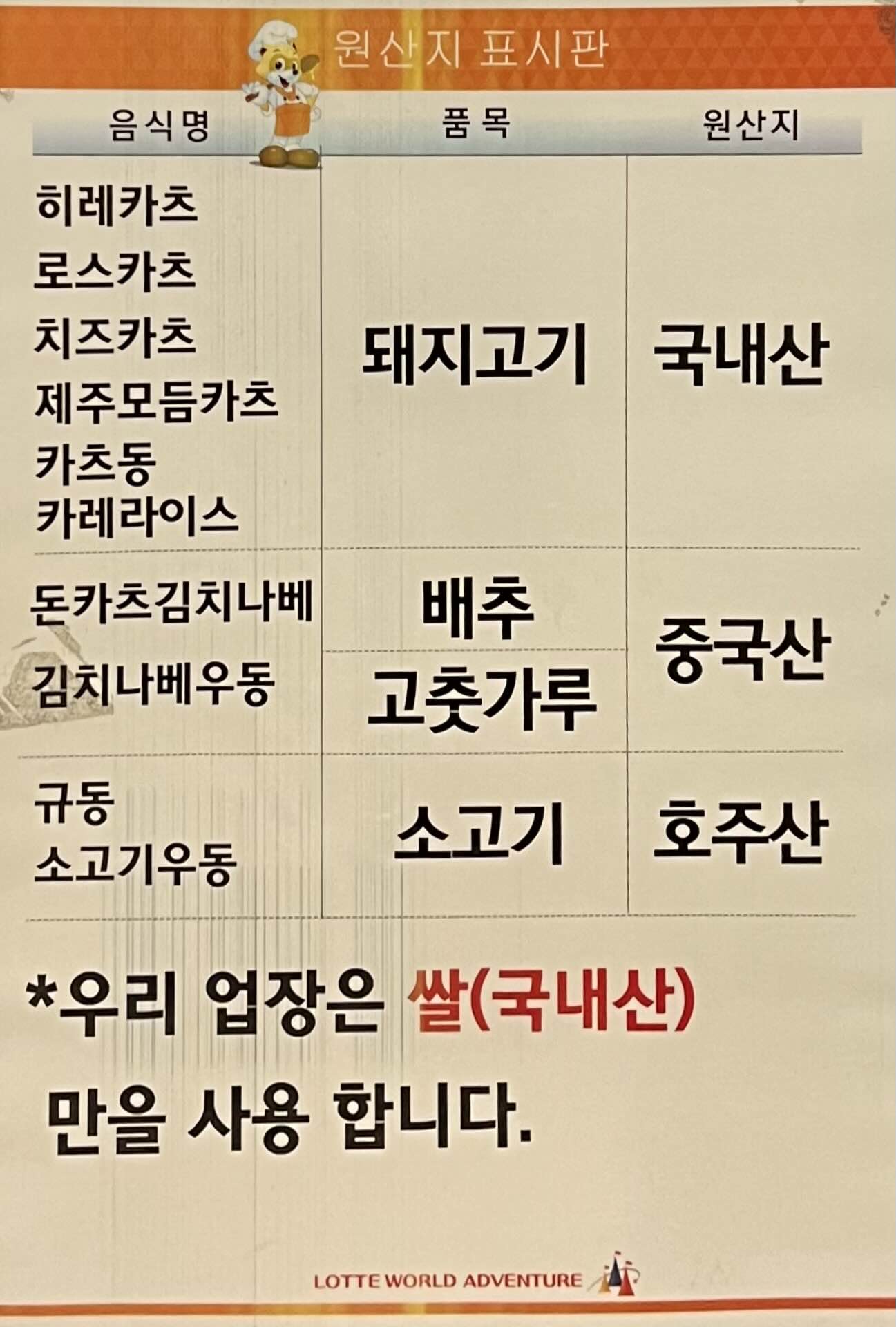 제주애월카츠의 원산지 표시판을 공개하며,