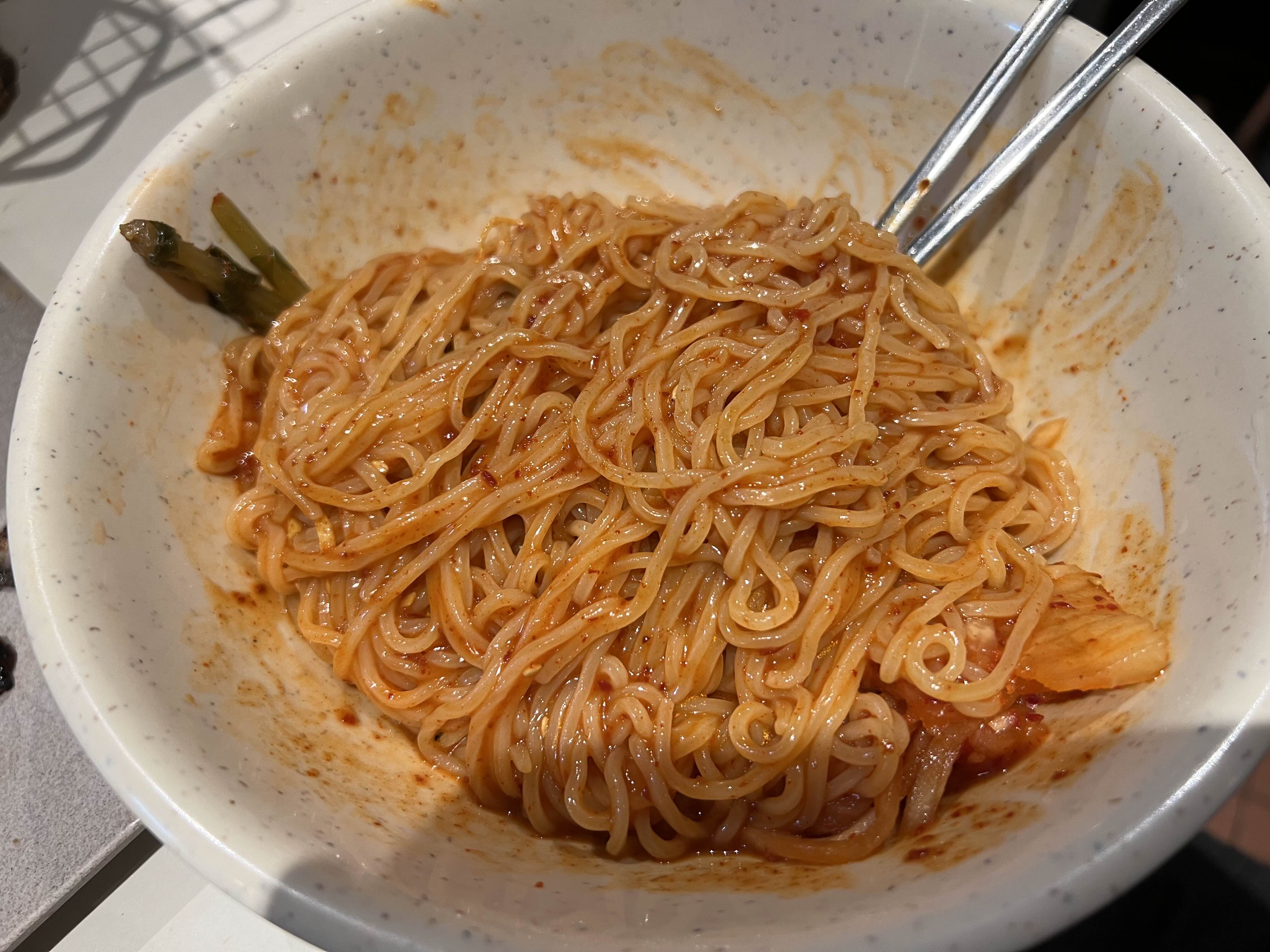 화로가 테이블 위에 올려져 공간이 좁고 얼굴이 후끈후끈했다는 점과