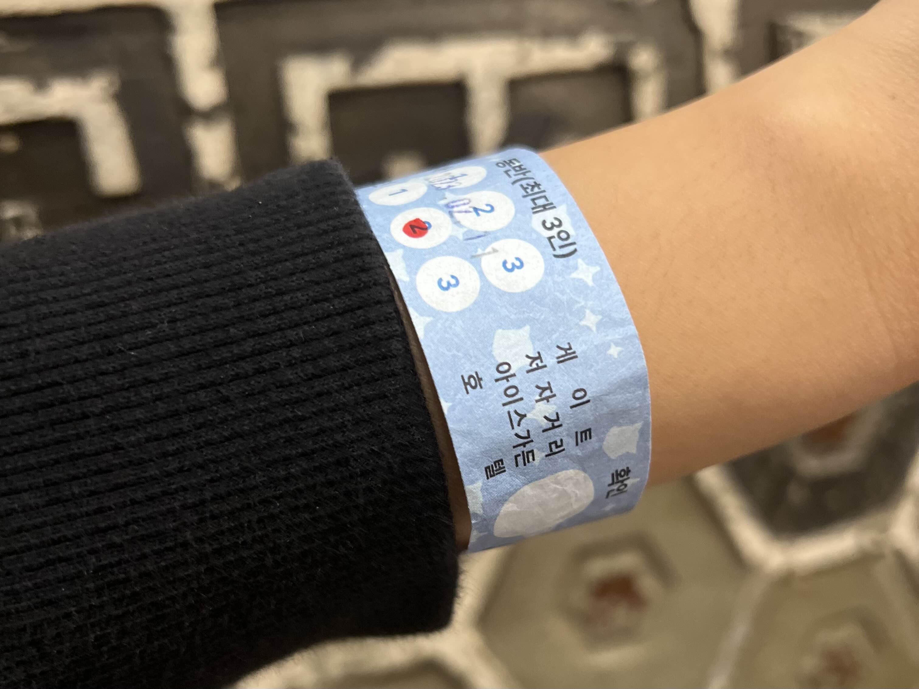 원랜 종이 티켓이었는데 팔찌 티켓으로 바뀌었네요.