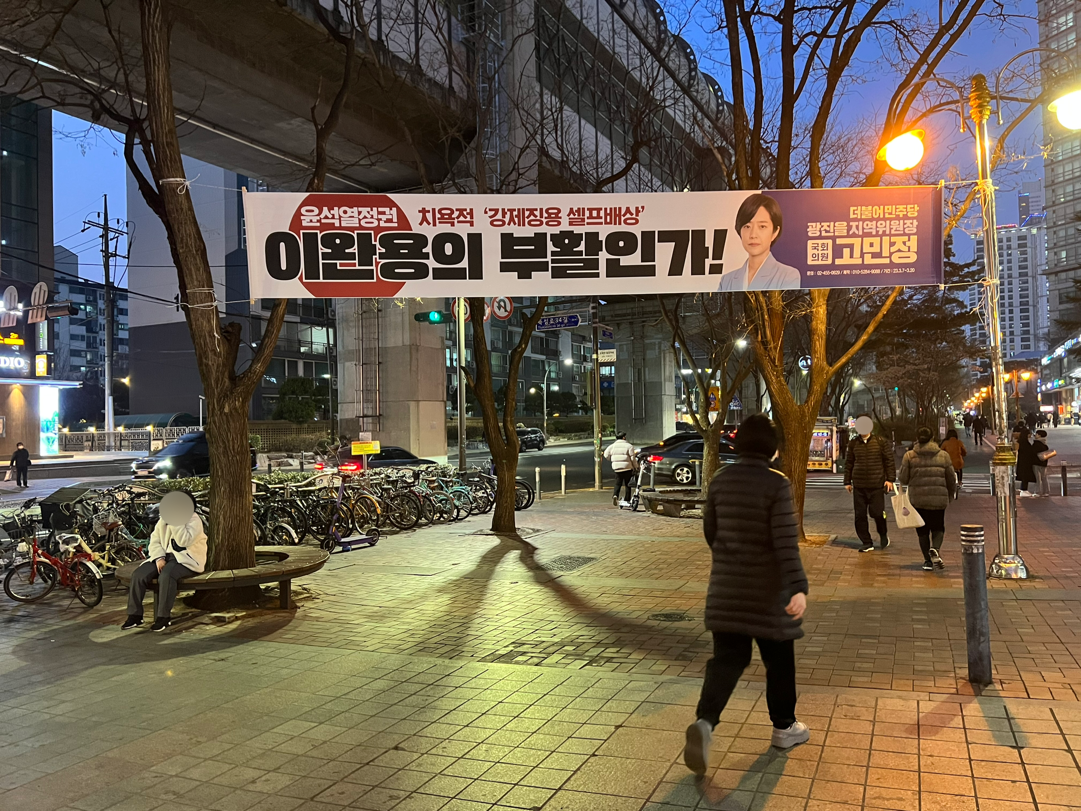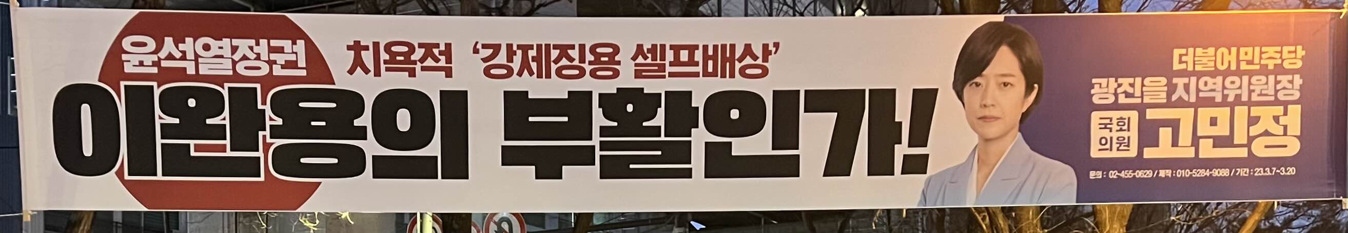 뚝섬유원지역 1번 출구에 새로운 현수막이 게시됐습니다.