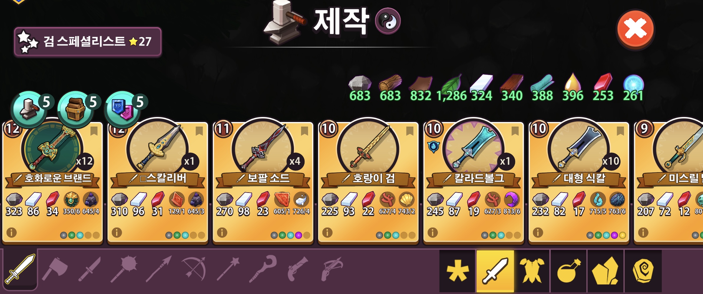 이중 주황색인 아이템은 유료 일꾼을 구매해야 제작이 가능합니다.