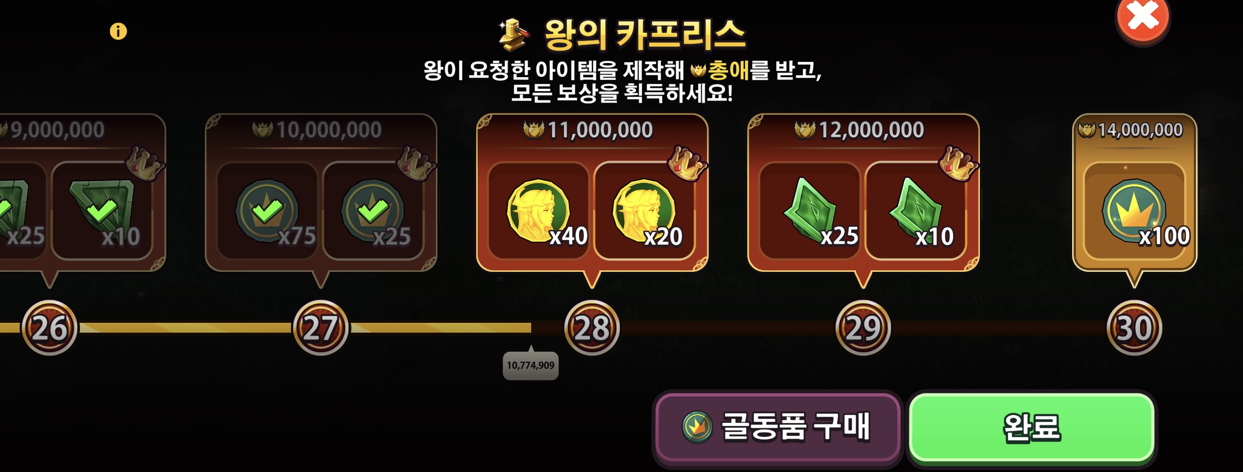 왕이 콕 집어서 요구하는 아이템은 최상단에 노출됩니다.