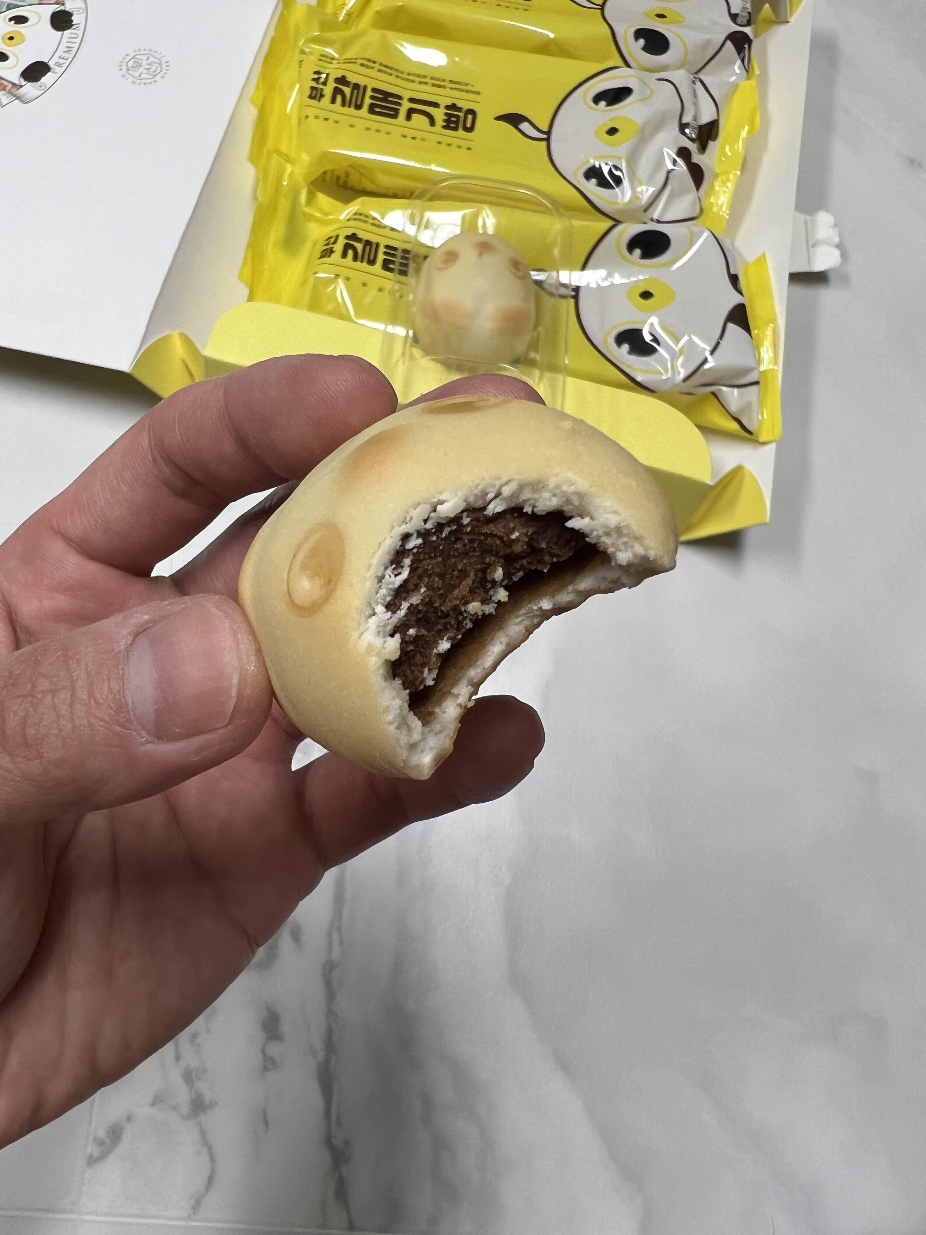가공된 식품이라 그런지 한여름의 차 안에서도 좋은 상태를 유지했던것 같고 초코 앙금의 56.25% 함유량 덕분인지 앙금이 적당히 달고 맛있었습니다. 사실 초코 맛이라기 보단 코코아 맛이 더 강한 느낌이었어요. 초코 맛 보단 코코아 파우더 같은 느낌. 겉 빵도 부드러웠습니다.