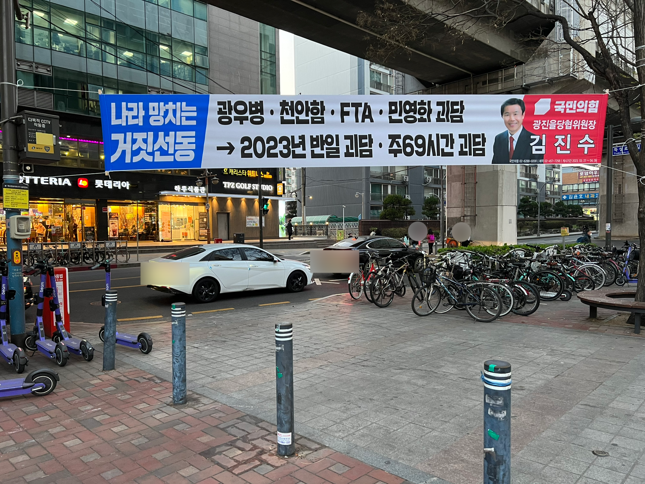 평화로운 뚝섬유원지 역 앞에서 이렇게나 현수막 싸움을 벌이는 걸까요..