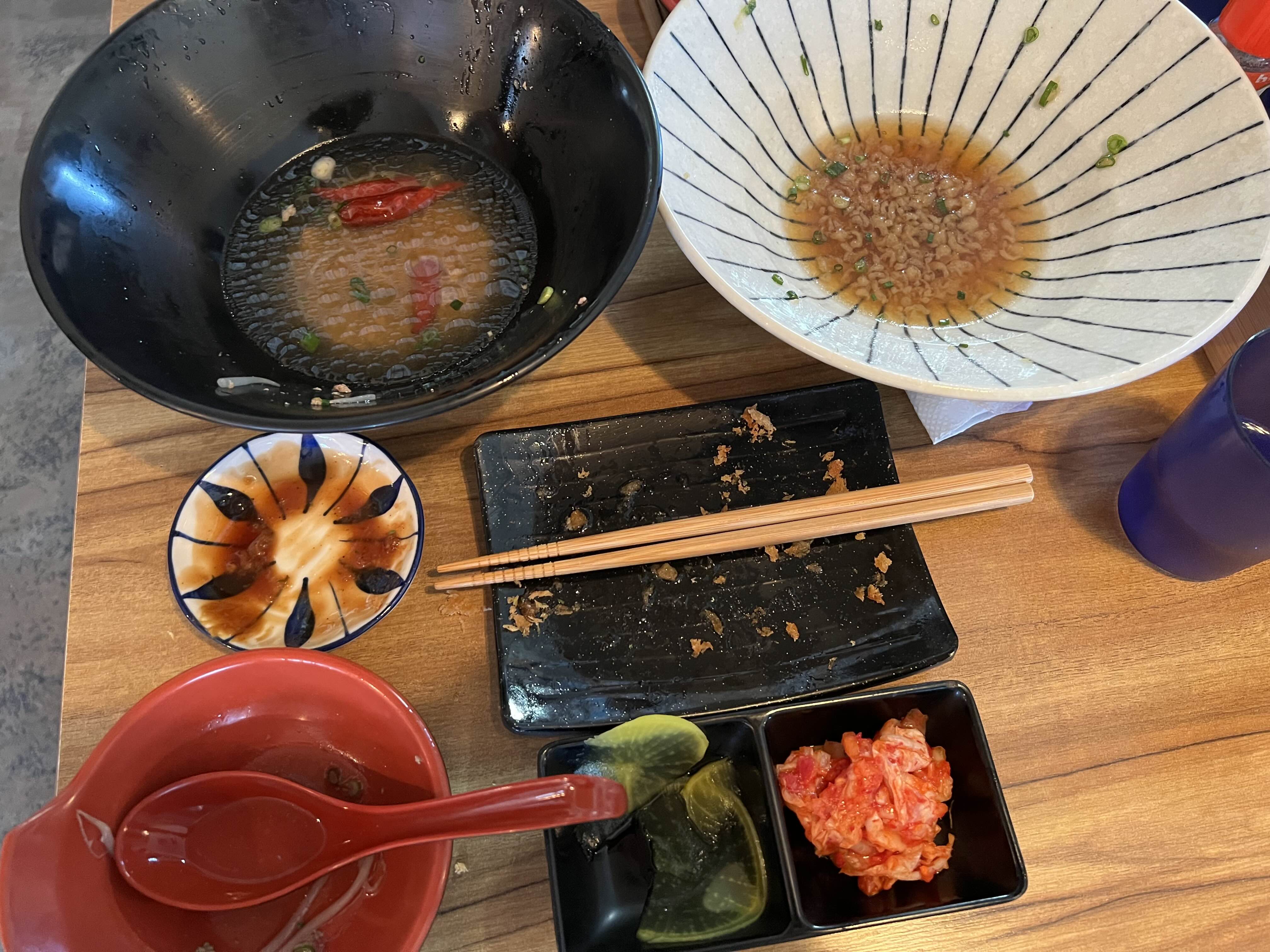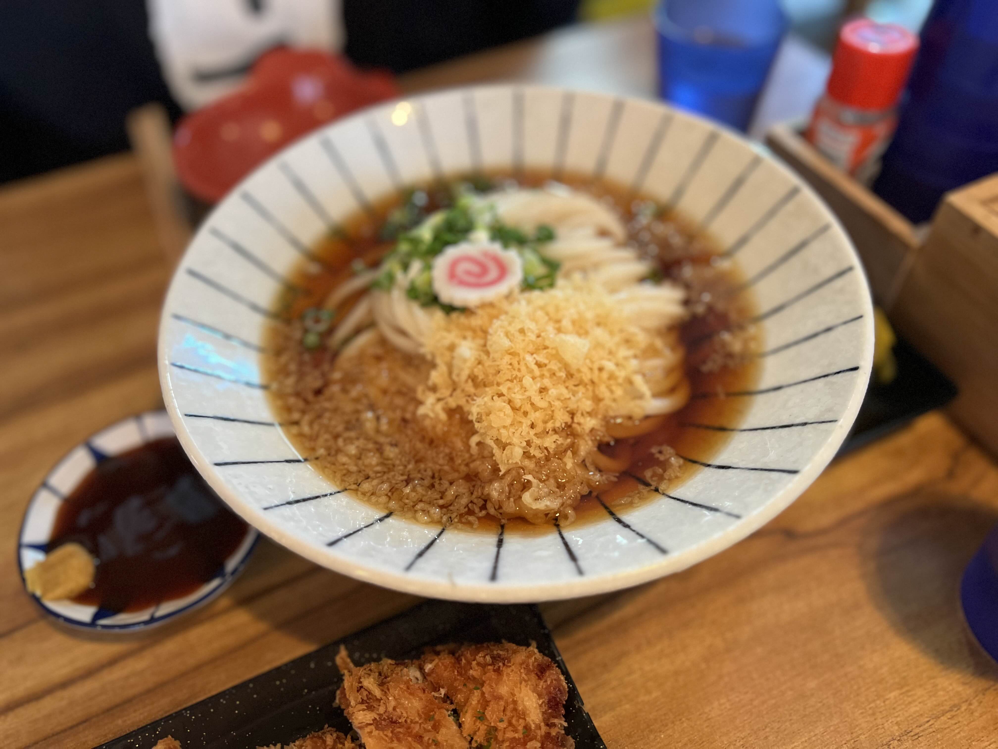 새우튀김이 토핑 된 가쓰오부시 베이스의 짭조름하고 시원한 국물이 언제나 일품이다.