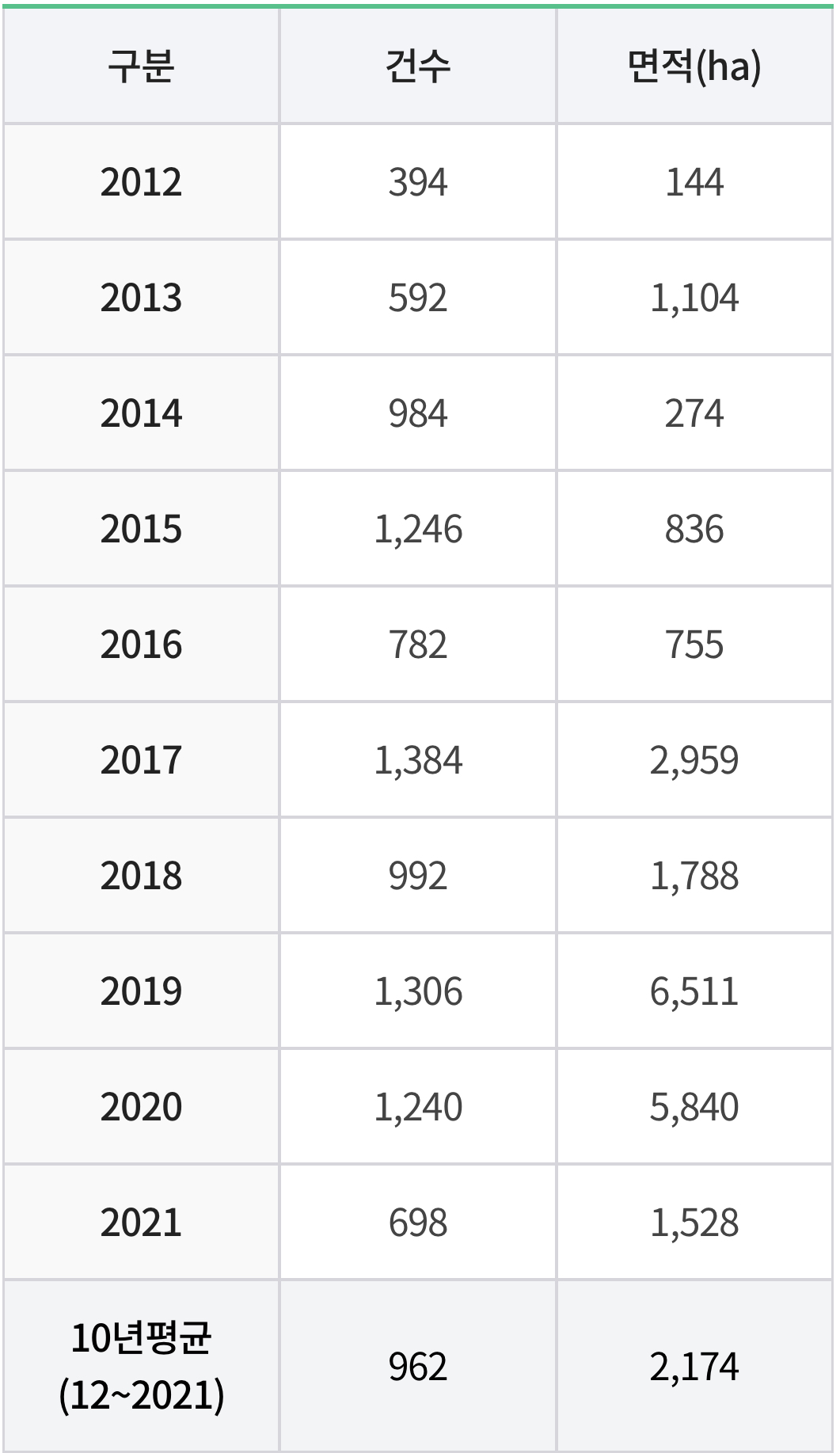 산림청 - 산림정책 > 산림보호 > 산불 > 산불발생현황